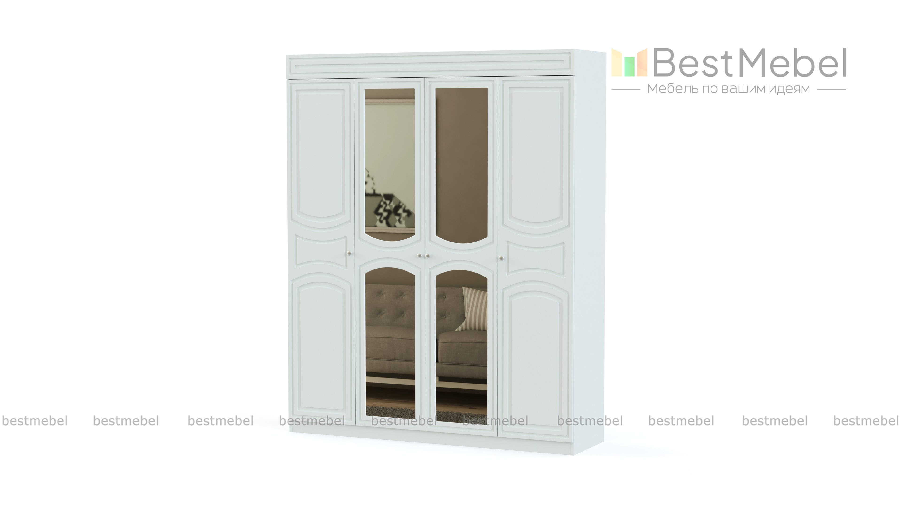 Шкаф 4-х створчатый Шарлота BMS отличает редкая вместительность, но при этом визуальная легкость благодаря белоснежным фасадам с зеркальными вставками. Украшенная фрезерованным рисунком, модель станет настоящим украшением интерьера спальни или гардеробной. Разместить одежду, обувь, аксессуары и многое другое помогут просторное платяное и два бельевых отделения с полками. Качественные материалы и фурнитура станут залогом долговечности и эстетичного вида. Купить шкаф 4-х створчатый Шарлота BMS по лучшей цене приглашаем в наш интернет-магазин.