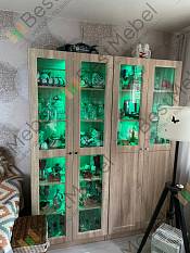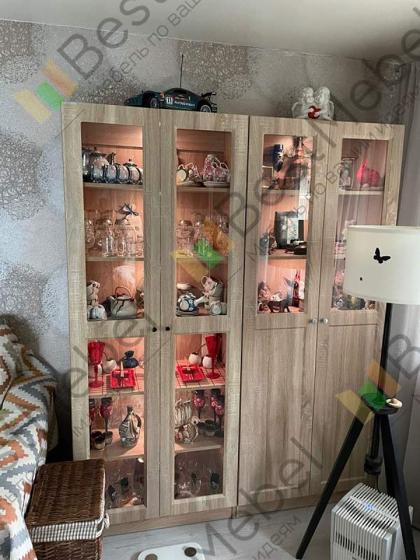 Шкаф просто прекрасный! Толстые стенки и полки не провисают и не деформируются под весом книг, хотя на каждый полке они стоят в два ряда. Внешний вид просто шикарный, я разделила на два шкафа, конструкция позволяет это сделать. Заказывала под все свои хотелки и при этом цена получилась более чем демократичная, а с учётом накопленных бонусов и вовсе подарок! Рекомендую, отличный шкаф, лучше, чем в Икее)