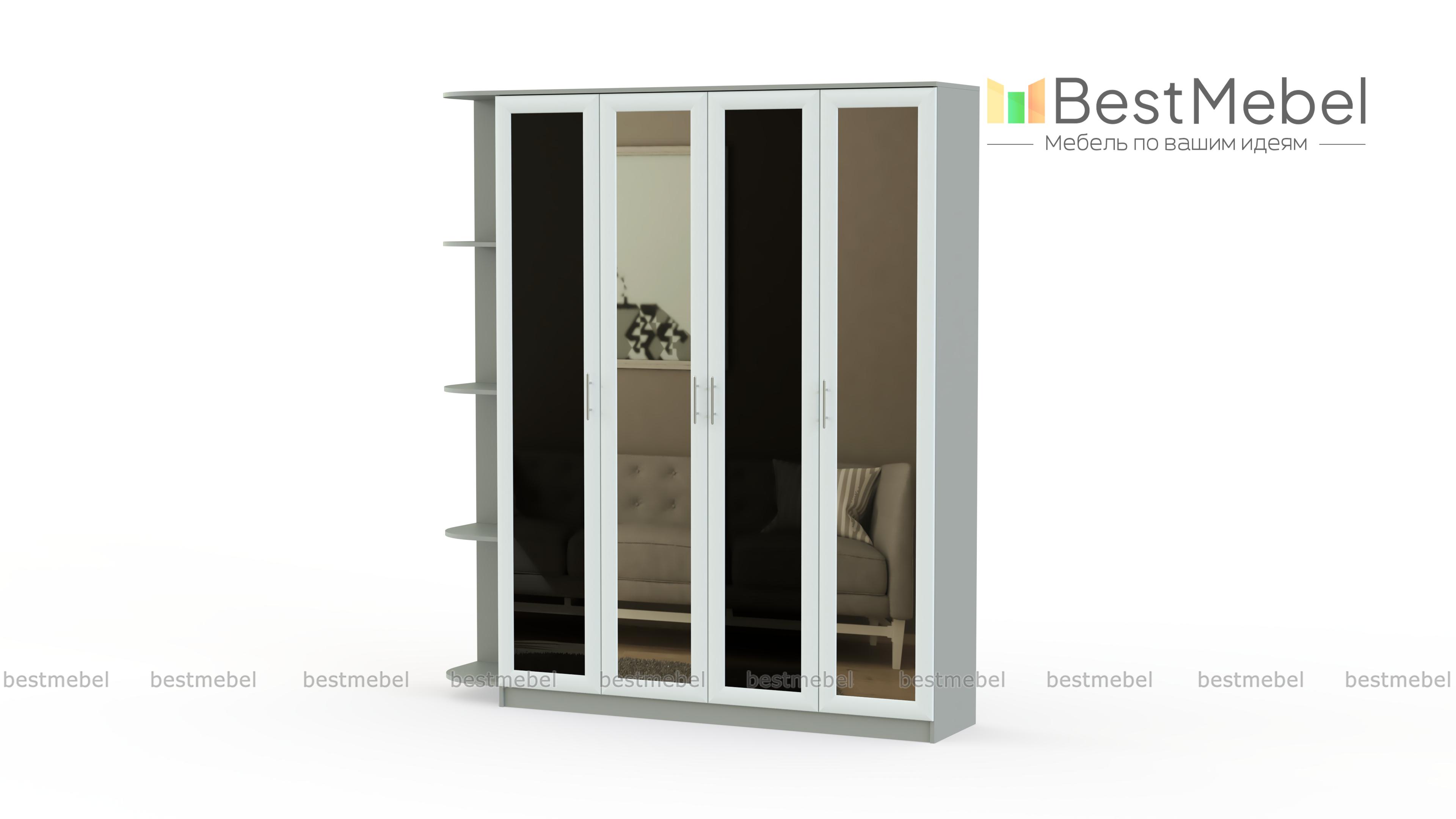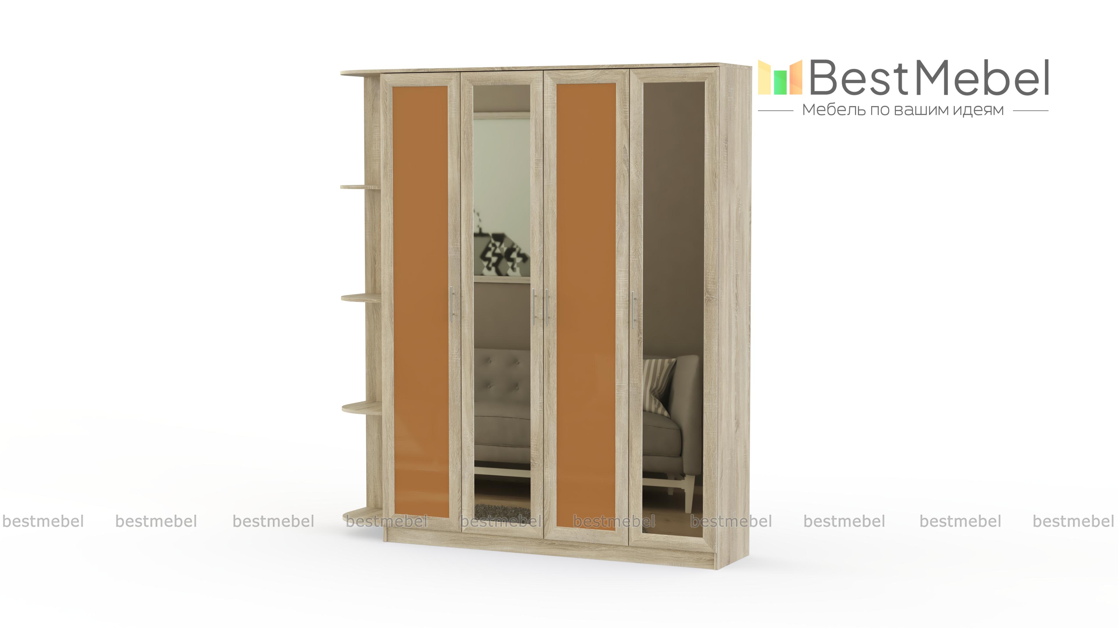Вместительный четырехстворчатый шкаф "Стайл Люкс-Ч1" BMS – элегантный микс классических элементов в оформлении и современной функциональности. Благодаря яркому декору модель станет настоящим украшением интерьера и позволит разместить множество вещей, разгрузив другие помещения дома. Четыре створки с оригинальными фасадами имеют зеркальную и цветную поверхность. Внутреннее наполнение – отделение со штангой и бельевые полки.