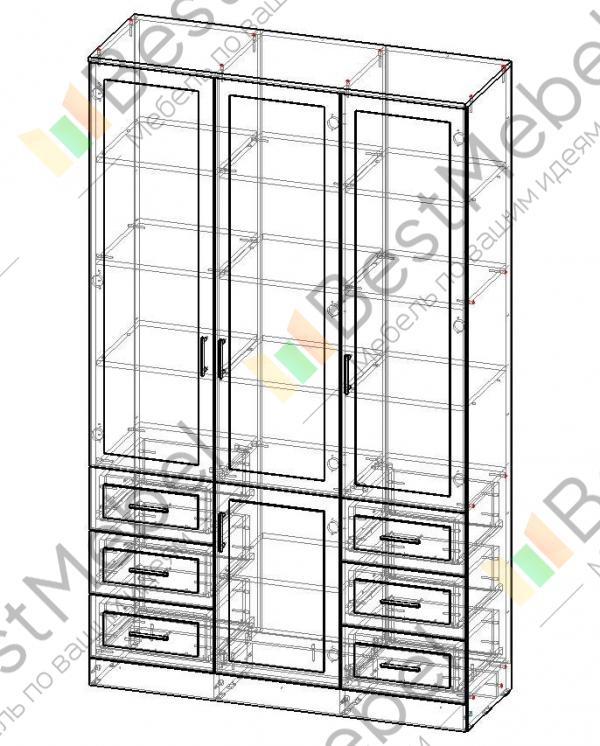 Шкаф книжный 3 №7 BMS оборудован застекленными полками в верхней части, а в нижней располагаются шесть выдвижных ящиков и отделение с глухой дверцей. Конструкция удобна для размещения книг и декора, документов и рабочих материалов. Рамки фасадов и древесные тона в оформлении шкафа создают классический дизайн, легко вписывающийся в интерьеры разного типа. Купить шкаф книжный 3 №7 BMS с выбором размеров, цвета и фурнитуры вы сможете в нашем интернет-магазине.