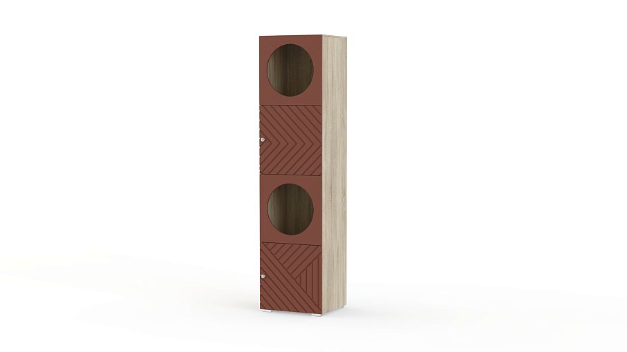 Шкаф-пенал Авелин 5 BMS одинаково удачно впишется в современную гостиную, прихожую или детскую комнату, компактно разместив вещи на полках. Стильный пенал с геометрическим дизайном выполнен из прочной ламинированной плиты и фрезерованной МДФ. Закрытые глухими фасадами секции чередуются с витринами, украшенными круглыми вырезами. Купить шкаф-пенал Авелин 5 BMS в необходимых размерах и оттенках нашего каталога вы всегда сможете на сайте интернет-магазина.