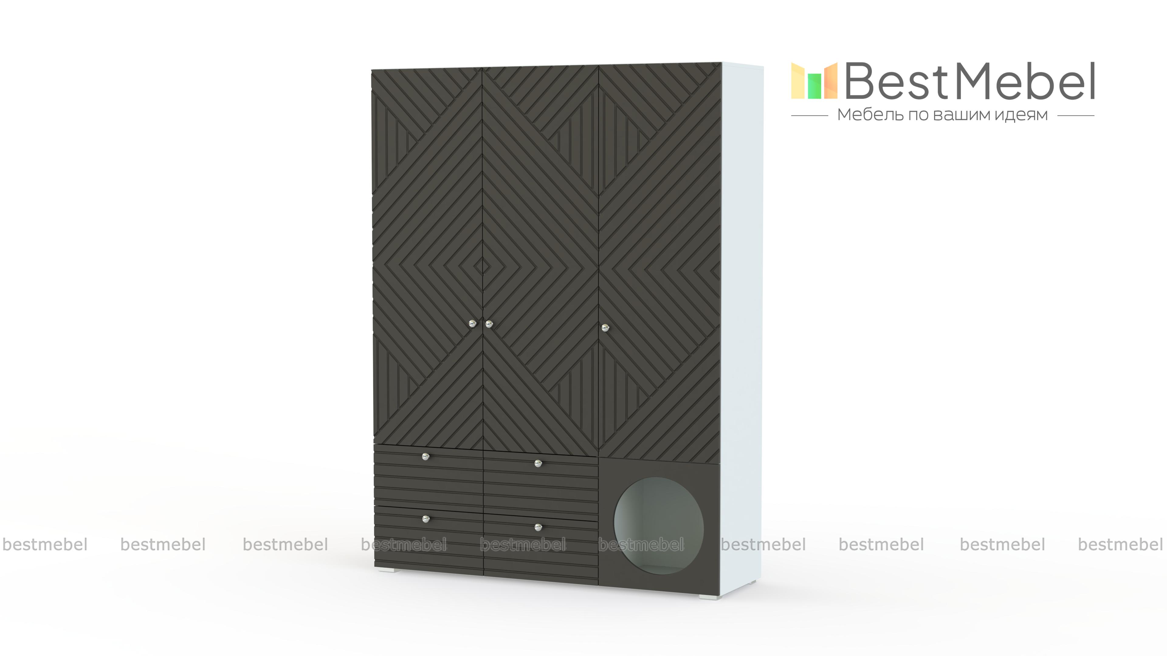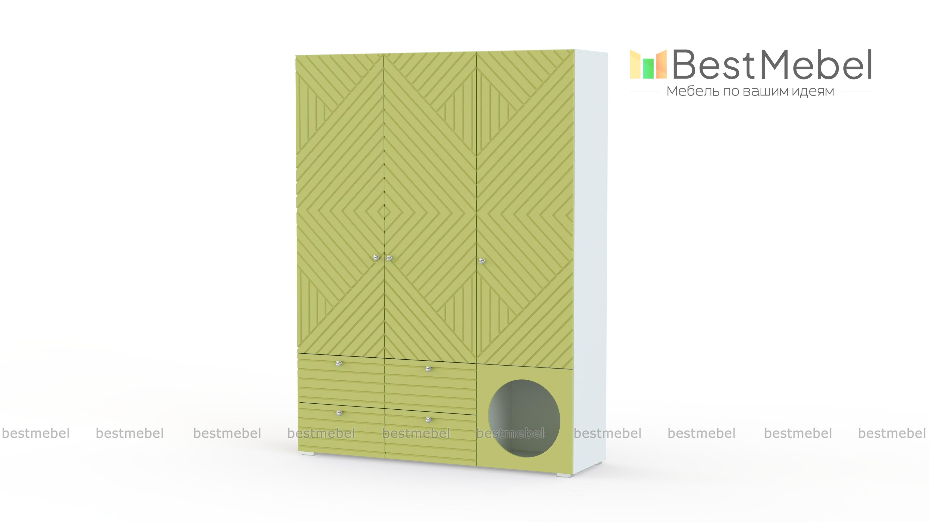 Шкаф распашной Авелин 16 BMS сделает хранение в детской удобным благодаря практичным решениям. Вместительные закрытые отделения, четыре выдвижных ящика для мелочей и оригинальный круглый отсек легко решают самые разные задачи. Благодаря качеству материалов фрезерованный фасад трехдверного шкафа надолго сохранит свой эстетичный вид. Купить шкаф распашной Авелин 16 BMS, изготовленный по вашим размерам, приглашаем на сайт нашего интернет-магазина.