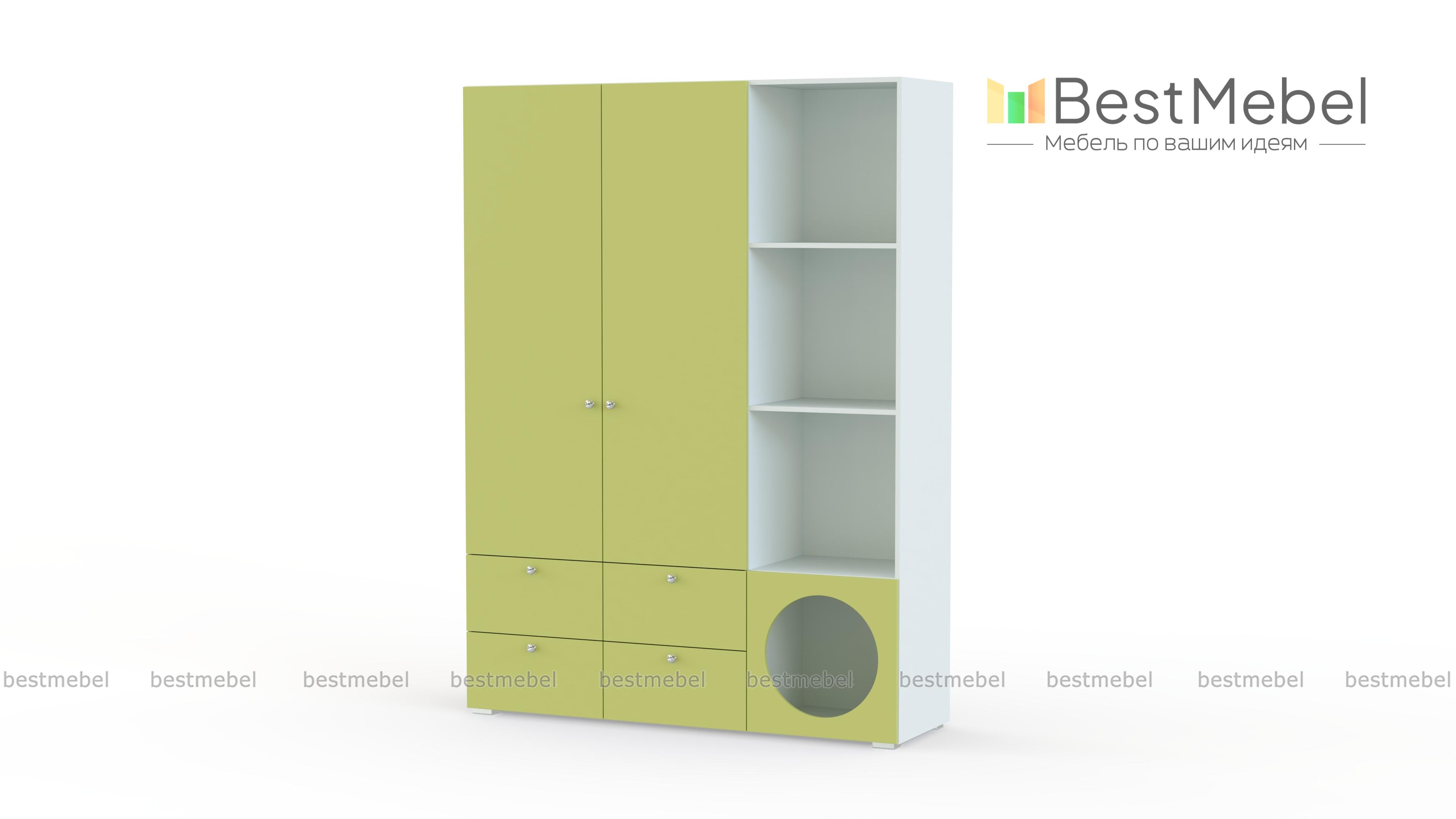 Шкаф распашной Авелин 5 BMS — это гардероб, бельевой комод и оригинальный книжный стеллаж с круглым вырезом. Многофункциональная конструкция с двумя распашными дверцами, выдвижными ящиками и открытыми полками значительно экономит полезные метры. Универсальные цвета и простые формы шкафа — отличная основа для современного подросткового интерьера. Купить шкаф распашной Авелин 5 BMS с выбором фурнитуры и цвета по каталогу приглашаем к нам в интернет-магазин.
