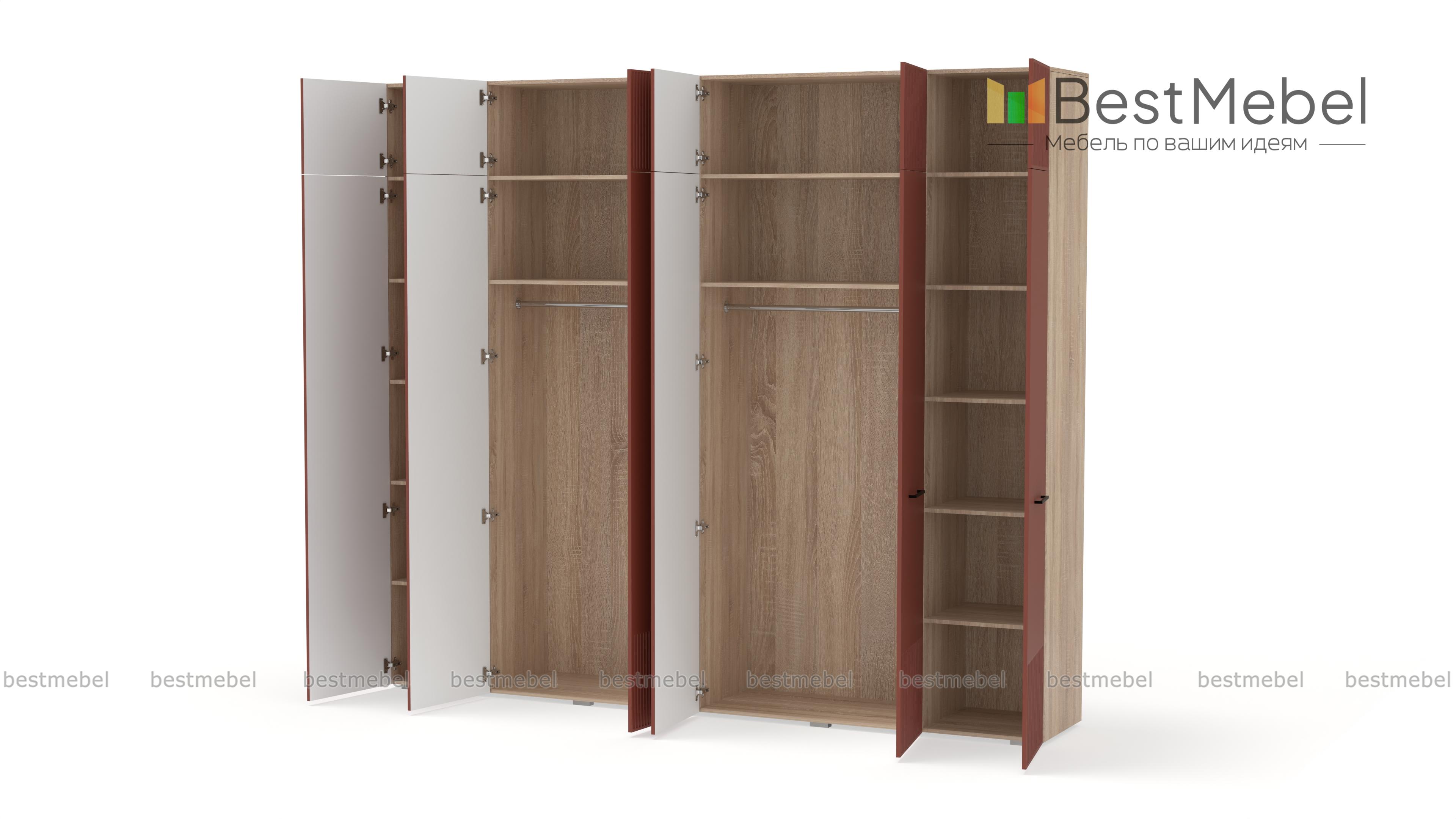 Шкаф распашной Декарт 12 BMS — это вместительный современный гардероб с антресолью. В двух секциях с перекладинами и двух бельевых отделениях можно хранить одежду на вешалках и сложенные вещи, а то, что вы редко используете, убрать на верхние полки. Светлый, рифленый по низу и верху фасад шкафа оснащен стильными поперечными ручками. Купить шкаф распашной Декарт 12 BMS вы сможете на сайте нашего интернет-магазина с изготовлением по индивидуальным размерам.
