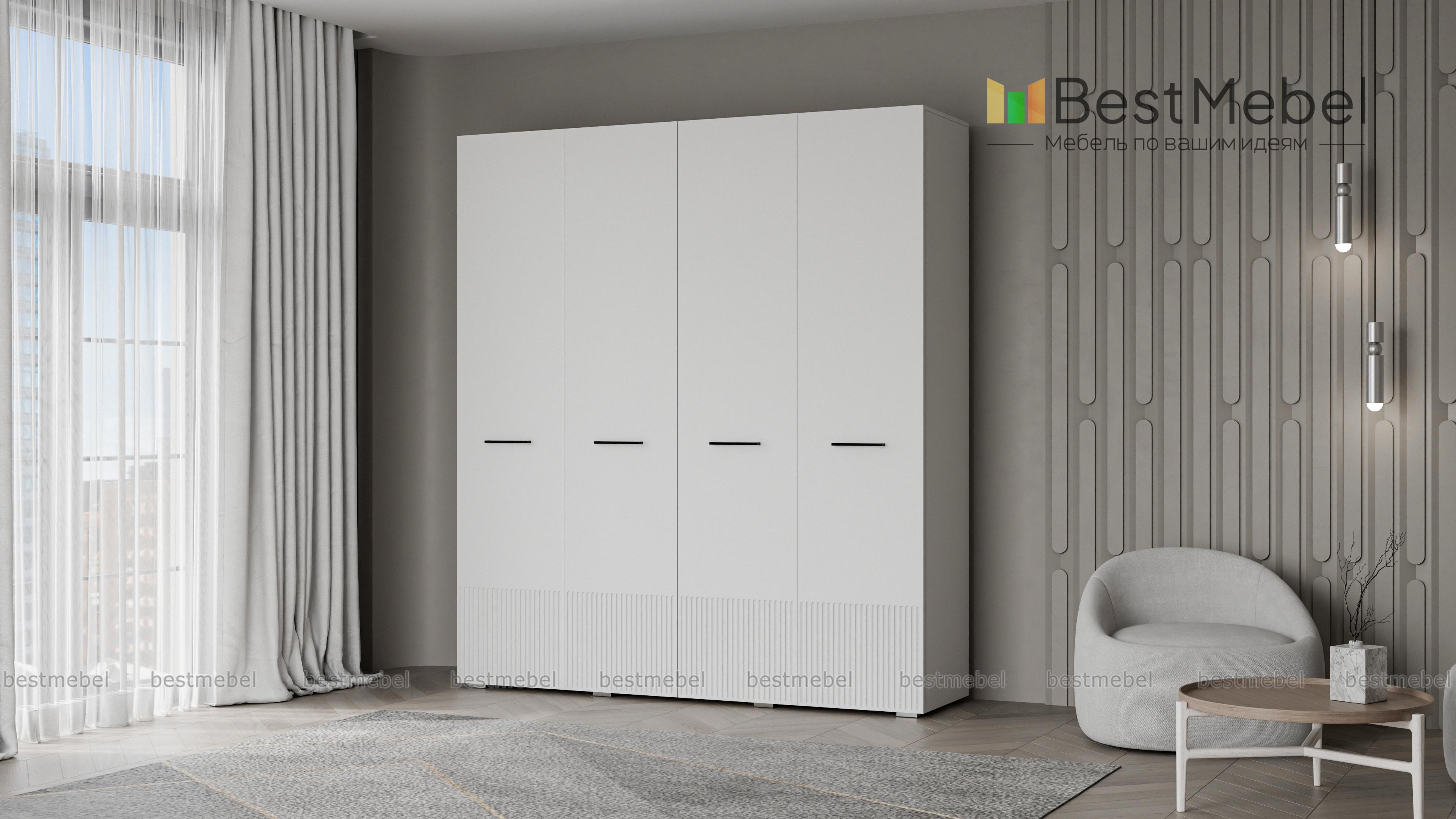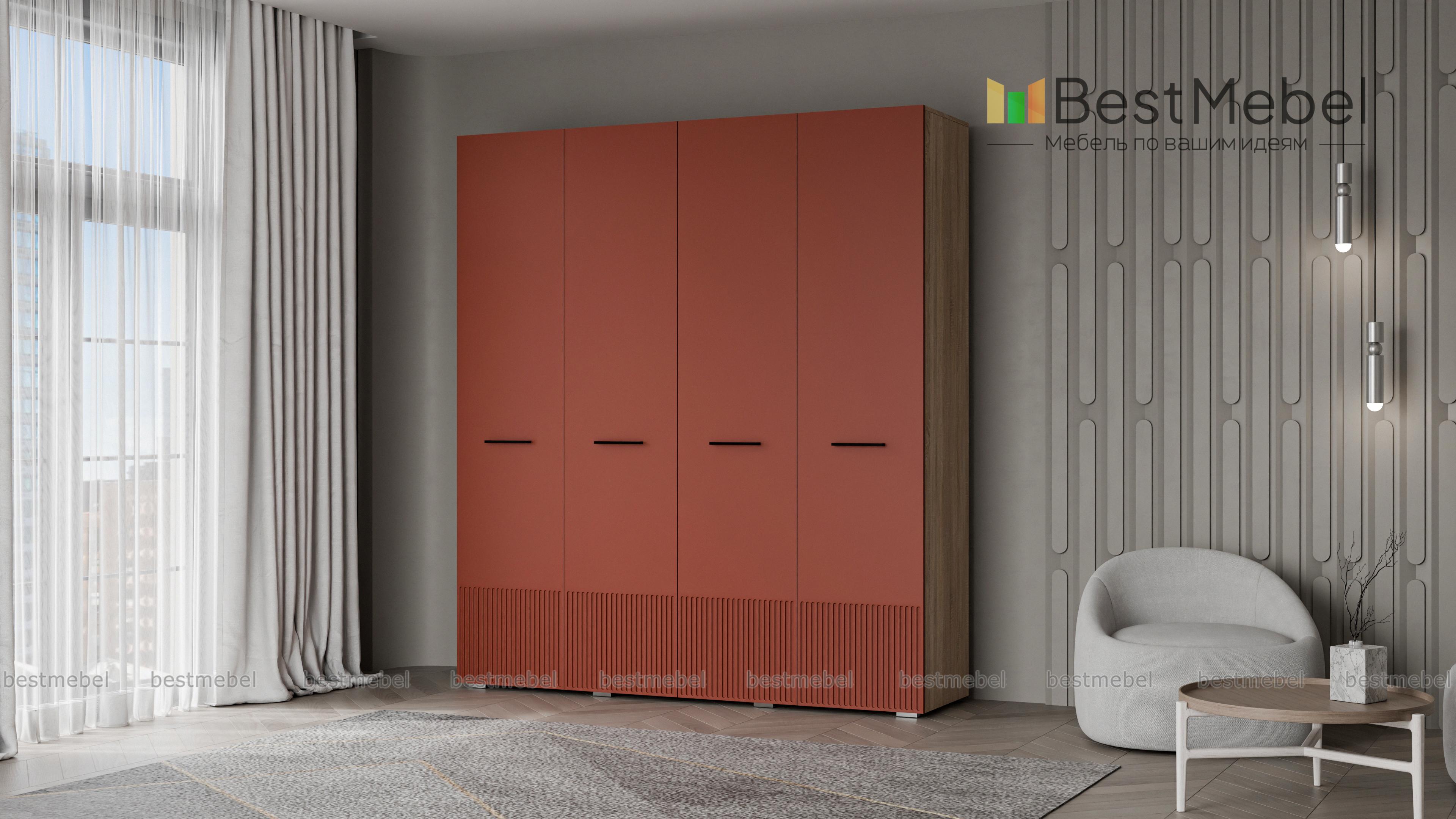 Шкаф распашной Декарт 4 BMS выполнен в традиционном стиле с поперечными контрастными ручками и фрезеровкой, что придает ему современный вид. Сочетание двух штанг разной длины и полок позволяет вам удобно организовать хранение одежды и коробок с обувью. Устойчивый к механическим повреждениям и влаге фасад из МДФ легко содержать в чистоте. Купить шкаф распашной Декарт 4 BMS с выбором размеров, цвета и наполнения вы всегда сможете в нашем интернет-магазине.