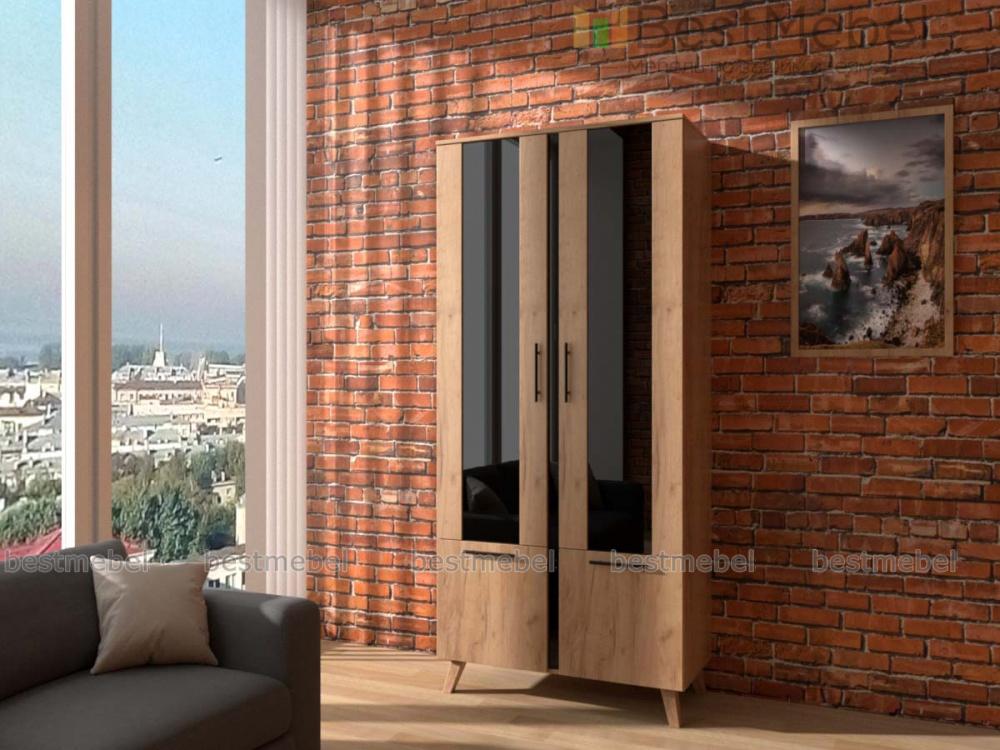 Шкаф распашной Дина 4 BMS привлекает нестандартным сочетанием теплого древесного фона с акцентами черных глянцевых вставок. Оригинальная модель дополнит комфортные интерьеры в стиле лофт и разместит бытовые мелочи, книги, посуду и многое другое. Расположенный на высоких устойчивых ножках, четырехдверный шкаф оборудован двумя распашными отделениями с полками. Купить шкаф распашной Дина 4 BMS для современной гостиной приглашаем в наш интернет-магазин.