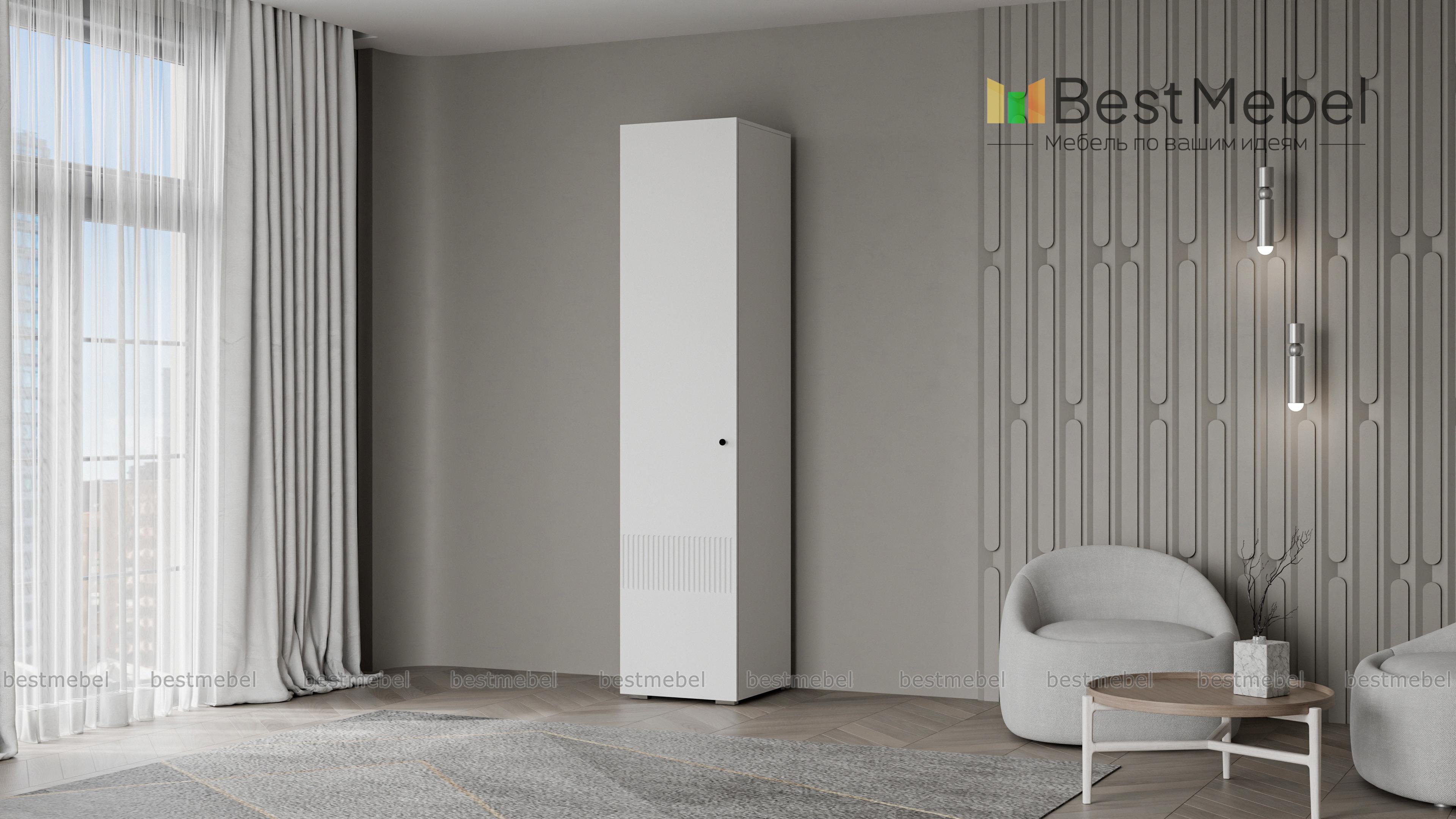 Шкаф распашной Джосс 1 BMS представляет собой компактный пенал для одежды. Внутри единственного отделения находятся штанга для вещей на вешалках и верхняя полка под аксессуары или коробки с мелочами. Фасад шкафа с фрезеровкой по низу выглядит ярко и современно, создавая стильный интерьер в вашей прихожей, спальне или гостиной. Купить шкаф распашной Джосс 1 BMS в подходящем размере и любых оттенках из каталога приглашаем недорого в наш интернет-магазин.