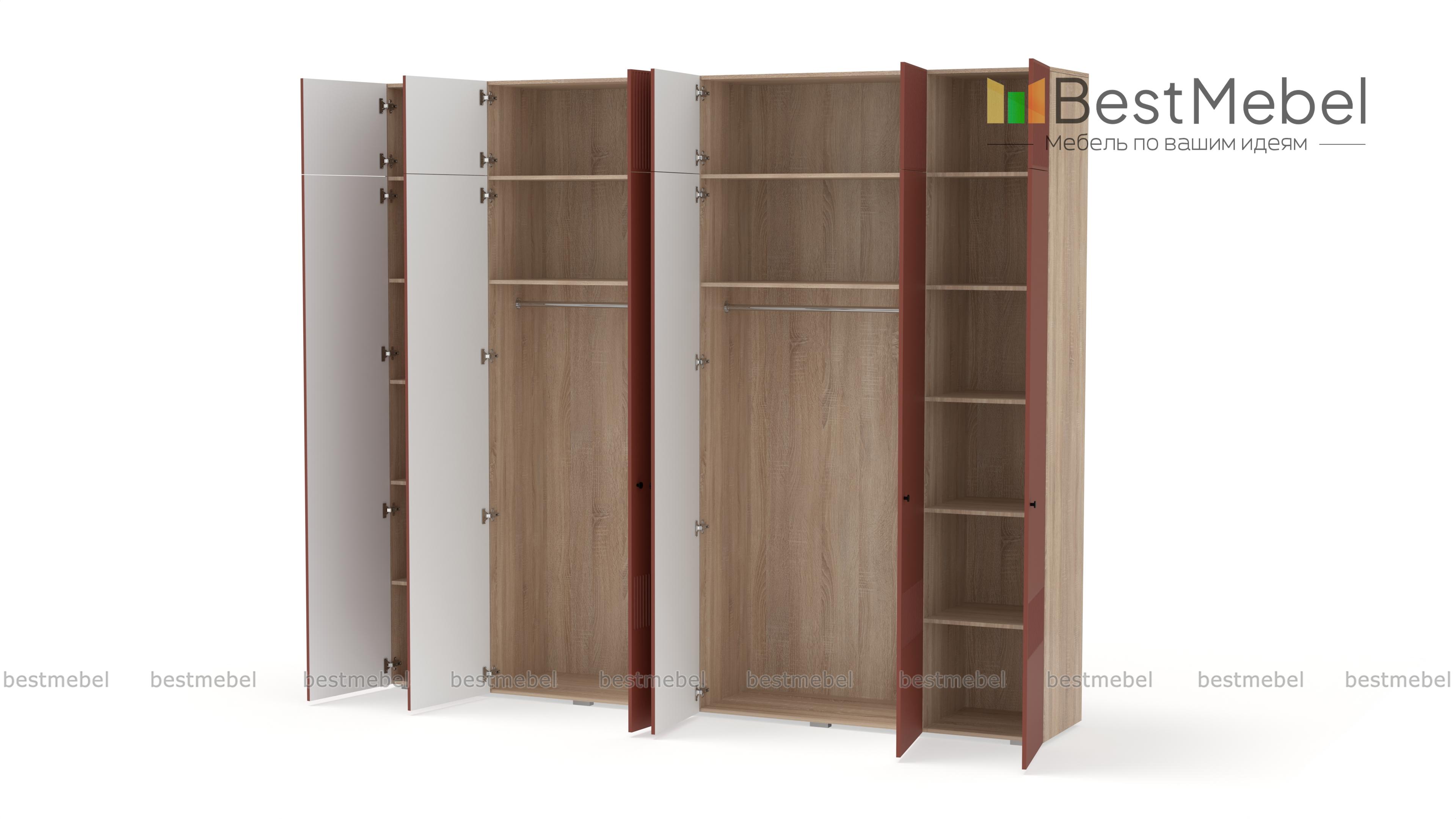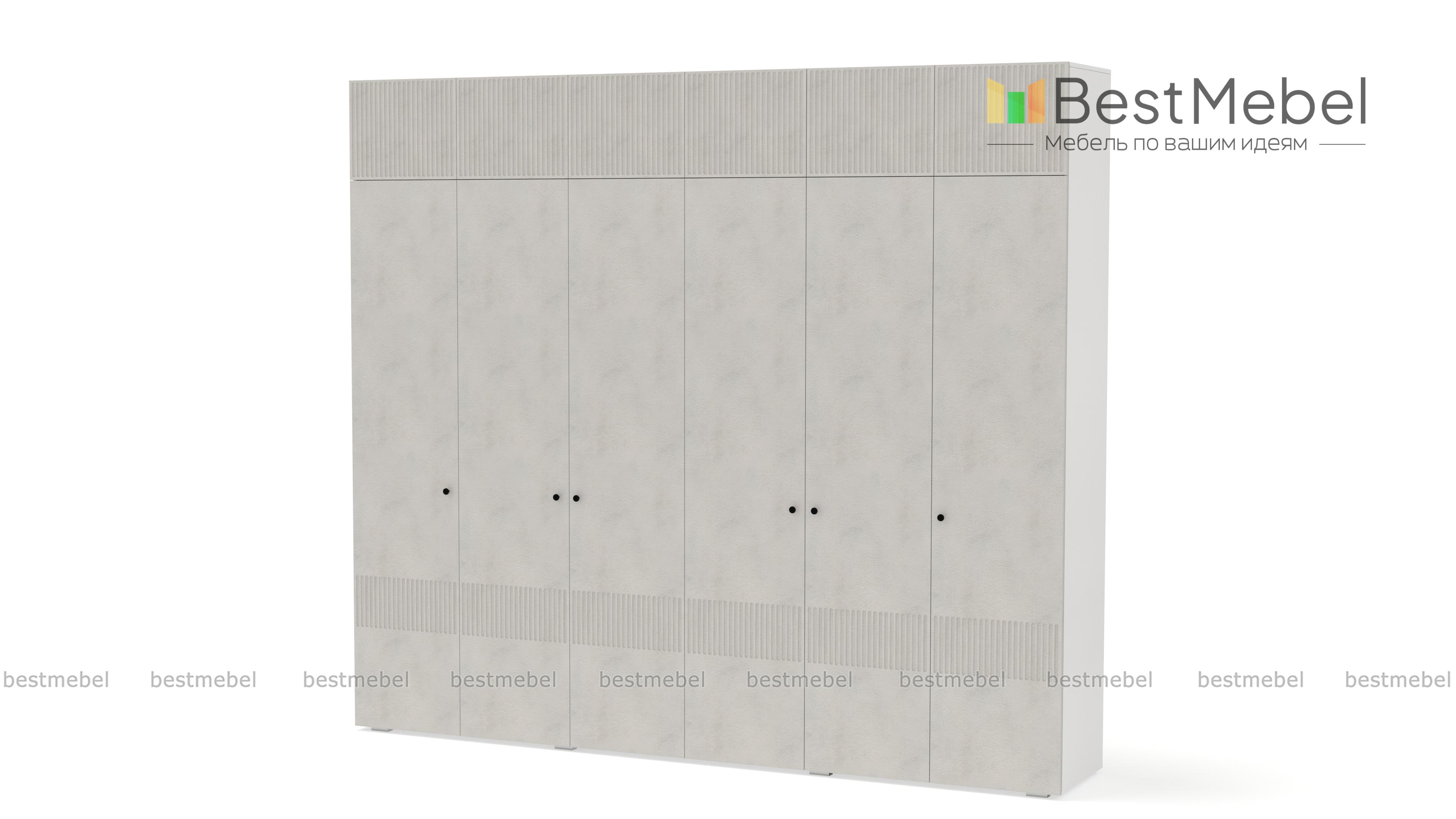 Шкаф распашной Джосс 12 BMS сохранит в порядке гардероб семьи. Шестидверная конструкция с двумя платяными отделениями, расположенными в центре, двумя бельевыми и вместительной антресолью оптимально подходит для хранения одежды и обуви двух человек. Выполненный в комфортной гамме, шкаф имеет стильную рельефную отделку по фасаду. Купить шкаф распашной Джосс 12 BMS вы сможете на сайте нашего интернет-магазина, подобрав нужные размеры, цвет и компоновку.