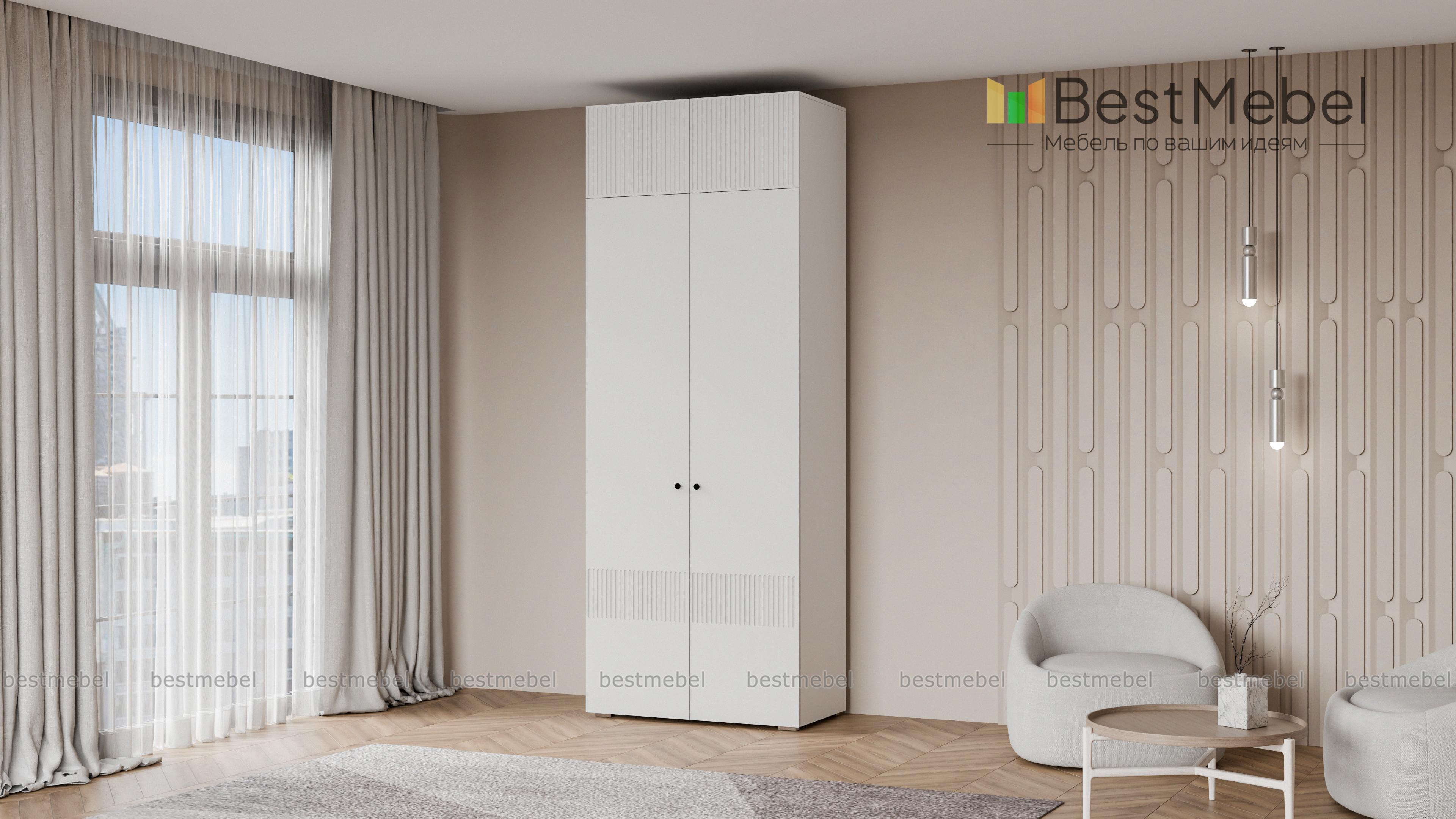 Шкаф распашной Джосс 8 BMS поможет эстетично организовать хранение, даже если пространство ограничено. За двумя дверцами, украшенными вертикальной фрезеровкой, — платяное отделение для одежды на вешалках и полка под коробки с аксессуарами. Дополнительный отсек сверху добавляет небольшому шкафу полезного объема, позволяя разместить сезонные или габаритные вещи. Купить шкаф распашной Джосс 8 BMS, изготовленный по индивидуальным размерам, вы сможете на сайте нашего интернет-магазина.