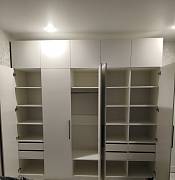 Заказ 00000275042, шкаф распашной Остин Лайт 6 BMS (1700х2500х500). Это не первый мой шкаф с БестМебель. Классно, что можно придумать свое наполнение, очень удобно. В целом качество нормальное, кое-где есть микро сколы, но их видно только при ближайшем рассмотрении, но не при ежедневном использовании. Фурнитура приемлемая, только на верхних полках мы просили не устанавливать пуш-ту-опен механизм, иначе дверцы немного оттопыриваются. Но поскольку туда убраны редко используемые вещи, это не проблема. Так что могу рекомендовать, особенно если требуется какое-то нестандартное исполнение.