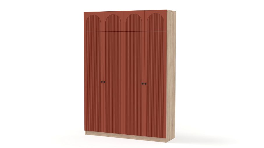 Шкаф распашной Рене 27 BMS дополнен антресолью, что позволяет выгодно использовать пространство спальни или прихожей. В одном месте могут храниться повседневный гардероб и те вещи, которыми вы редко пользуетесь. Особенность дизайна четырехдверной модели — рифленый фасад с геометрическим рисунком, выполненный из устойчивой к влаге и механическим повреждениям плиты МДФ. Купить шкаф распашной Рене 27 BMS с выбором габаритов, цвета и наполнения приглашаем в наш интернет-магазин.