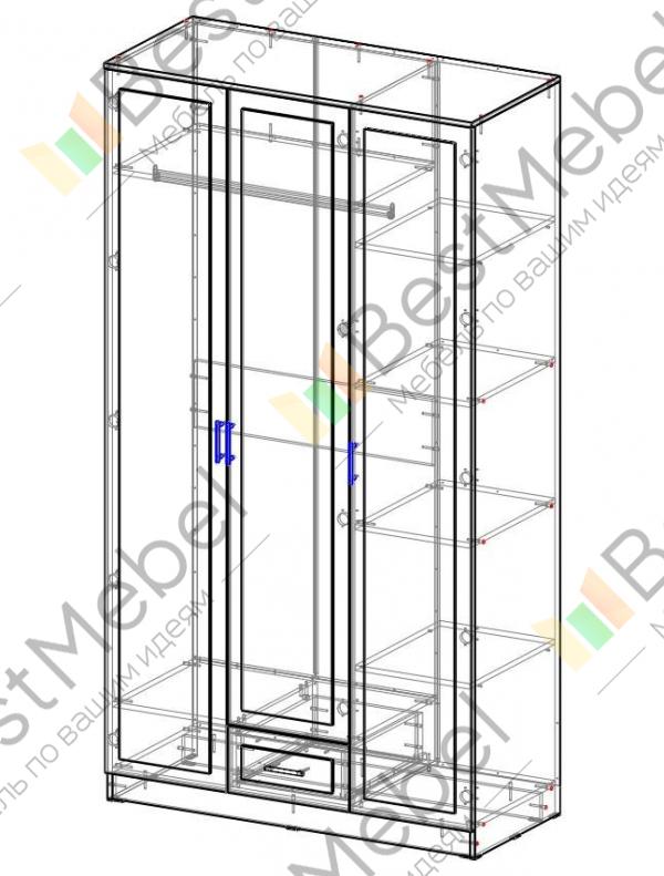 Рекомендуем Вам приобрести распашной шкаф ШКАФЫЧ-13. Несмотря на свои небольшие габариты, модель получилась очень вместительной и функциональной. Два высоких и достаточно глубоких боковых шкафчика станут отличным местом для хранения одежды для большой семьи. Центральное отделение со штангой предназначено для верхней одежды, костюмов, платьев. В нижней части шкафа расположился один небольшой выдвижной ящик. Заказать шкаф ШКАФЫЧ-13 Вы можете на нашем сайте.