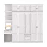 Шкаф со столом Лея 4 BMS – это многофункциональная модель, объединившая удобную систему хранения и туалетный столик. Пятидверный шкаф с платяными и бельевыми отделениями, выдвижными ящиками и антресолью дополнен открытыми торцевыми полками, туалетным столом с откидной столешницей и банкеткой. Классическая модель выполнена в универсальном белом цвете и декорирована по фасаду рамочной фрезеровкой. Купить шкаф со столом Лея 4 BMS и эффективно использовать пространство вам поможет наш интернет-магазин.
