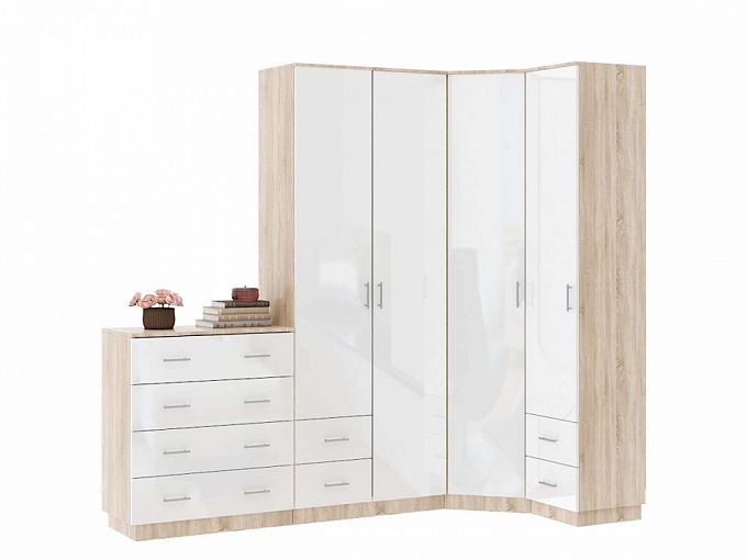 Шкаф Меркурий люкс-11 BMS станет практичным и эффектным дополнением современной спальни. Угловая модель отличается редкой вместительностью благодаря наличию разного типа отделений и продуманной системе хранения. В комплект входят двухдверный шкаф с бельевым, платяным отделением и выдвижными ящиками, угловой однодверный шкаф, комбинированный пенал и классический комод с четырьмя просторными выдвижными ящиками. Фасады в эффектном и износостойком глянце надолго сохранят эстетичный вид. Купить шкаф Меркурий люкс-11 BMS по лучшей цене приглашаем в наш интернет-магазин.