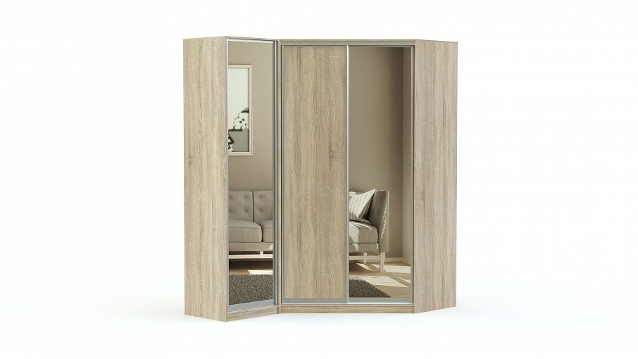 Шкаф угловой Тауэр 1.1 BMS поможет оптимизировать пространство и компактно разместить одежду на плечиках, постельные принадлежности и аксессуары. Практичная угловая композиция включает в себя раздвижной двухдверный шкаф-купе и однодверный шкаф, оборудованные одним платяным отделением и двумя бельевыми секциями с полками. Выполненный в древесных тонах, шкаф гармонично впишется в современный интерьер и визуально увеличит помещение за счет зеркальных фасадов. Купить шкаф угловой Тауэр 1.1 BMS по доступной цене приглашаем в наш интернет-магазин.