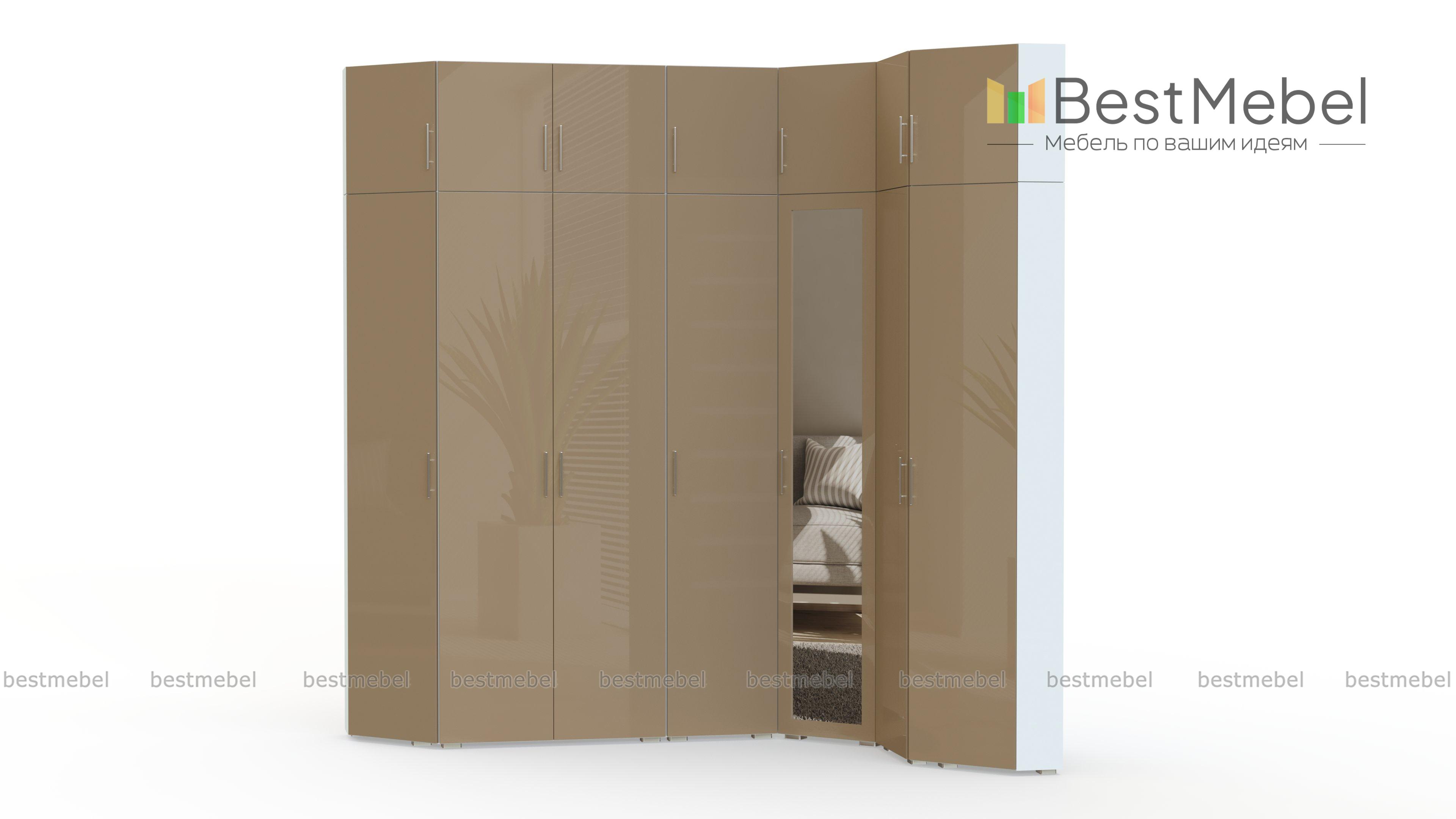 Угловой шкаф Марианна 21 BMS поможет визуально расширить границы комнаты и максимально выгодно использовать особенности планировки. Эффектная модель с белоснежным глянцевым фасадом, дополненным ростовым зеркалом, смотрится легкой, но при этом вместительна и оптимально подходит для хранения гардероба. Композиция Г-образной формы включает в себя одно- и двухдверные отделения с полками и штангами, дополненные антресолями. Купить угловой шкаф Марианна 21 BMS приглашаем к нам в интернет-магазин.
