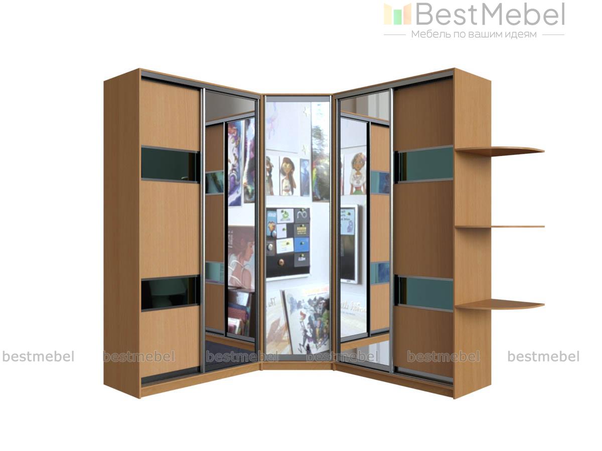 Угловой шкаф 47 BMS – это удобная система хранения для интерьера спальни или прихожей. Встроенная конструкция включает в себя распашной угловой шкаф с зеркальной дверцей, раздвижные двухдверные отделения и торцевой стеллаж с радиусными полками для уходовых средств и бытовых мелочей. Практичная модель эффективно использует пространство и экономит полезную площадь комнаты. Фасады современного дизайна выполнены в теплых древесных тонах и декорированы горизонтальными глянцевыми вставками контрастного цвета. Купить Угловой шкаф 47 BMS приглашаем в наш интернет-магазин.