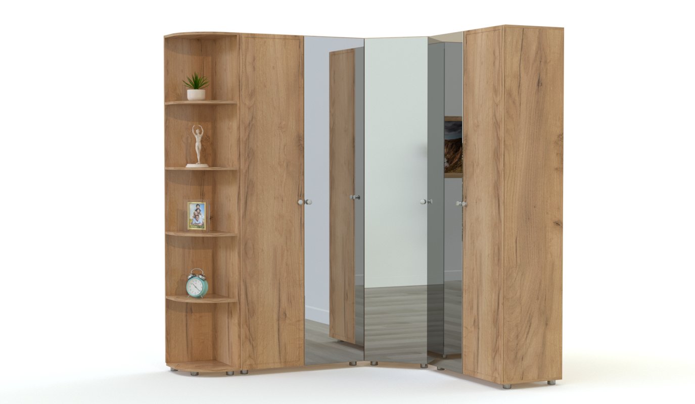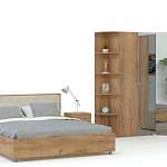 Спальня Фреско 7 BMS поможет вам выгодно использовать особенности планировки и создать эстетичный и функциональный интерьер. Элегантная модульная композиция выполняется в древесных оттенках на выбор и включает в себя все необходимое для полноценного сна и удобного хранения одежды, постельного белья и множества мелочей. В комплекте двуспальная кровать с мягкой обивкой высокого изголовья, прикроватные тумбы с выдвижными ящиками и угловая шкафная группа с глухими, зеркальными распашными отделениями и торцевым стеллажом. Купить спальню Фреско 7 BMS приглашаем в наш интернет-магазин.