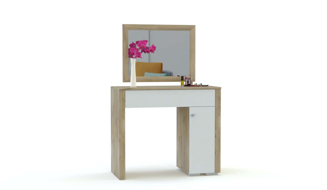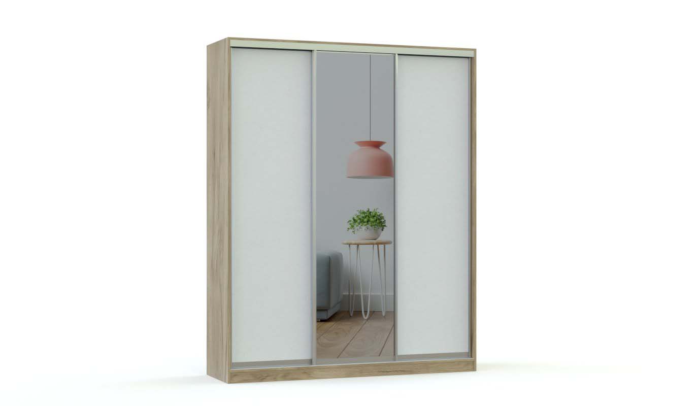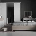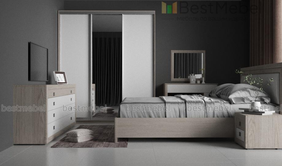 Спальня Глэдис 03 BMS отличается универсальным дизайном, который выгодно подчеркнет достоинства любого типа интерьера и не требователен к оформлению стен. Элегантный комплект с рамочными фасадами, сочетающий светлые древесные тона и темный матовый цвет, смотрится легким и не будет перегружать комнату лишними деталями. Спальня оборудована двуспальной кроватью с мягкой вставкой из экокожи в спинке изголовья, прикроватными тумбами, удлиненным комодом, который сможет оформить зону ТВ, туалетным столиком с навесным зеркалом и трехдверным шкафом-купе с зеркалами. Купить спальню Глэдис 03 BMS приглашаем в наш интернет-магазин.