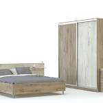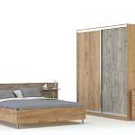 Комплект Кармен BMS – удобное и стильное решение для вашей спальни. Современная модель отличается не только эстетичным внешним видом, но и высокой функциональностью. В просторном шкафу легко разместится весь гардероб, а его раздвижные двери сэкономят пространство комнаты. Комфортная кровать оборудована двумя стандартными тумбами и закрепленными на панели открытыми полочками для книг и журналов. Выигрышно смотрится модель в натуральных серо – бежевых тонах.