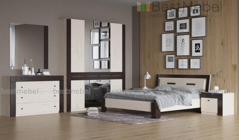 Спальня Конкорд 1Д1 BMS выделяется модным лаконичным силуэтом элементов и оригинальным цветовым оформлением, в котором эффектно сочетаются контрастные оттенки светлого клена и насыщенного венге. Стильный гарнитур включает стандартный набор таких предметов мебели как удобная кровать с изящными прикроватными тумбами, большой одежный шкаф с нарядными зеркальными фасадами дверей, красивый комод, над которым можно водрузить зеркало. Высокое оригинальное изголовье кровати имеет уютную мягкую обивку из светлой кожи, что добавит комфорта для отдыха. Купите в нашем магазине замечательную спальню Конкорд 1Д1 BMS недорого, скорректировав предлагаемые параметры на те, что подходят только вам. Предлагаем воспользоваться услугой опытных сборщиков, которые соберут и установят новую мебель.