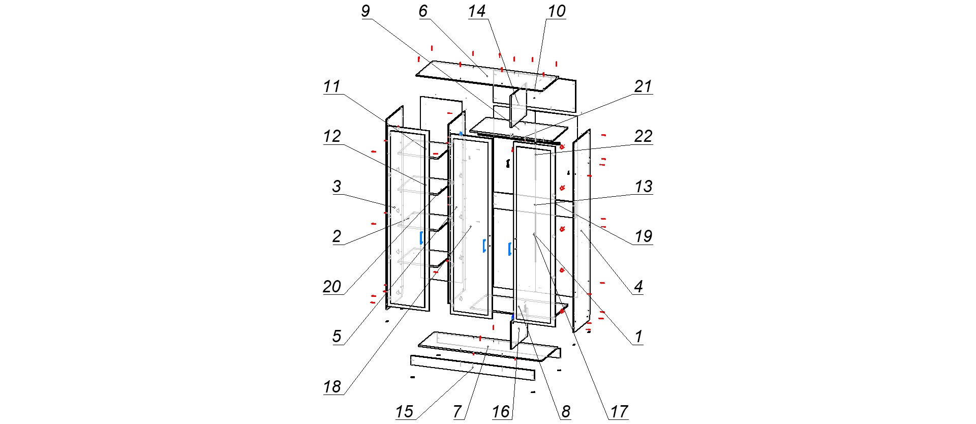 Габариты шкафа: длина 1300, высота 2150, глубина 500;