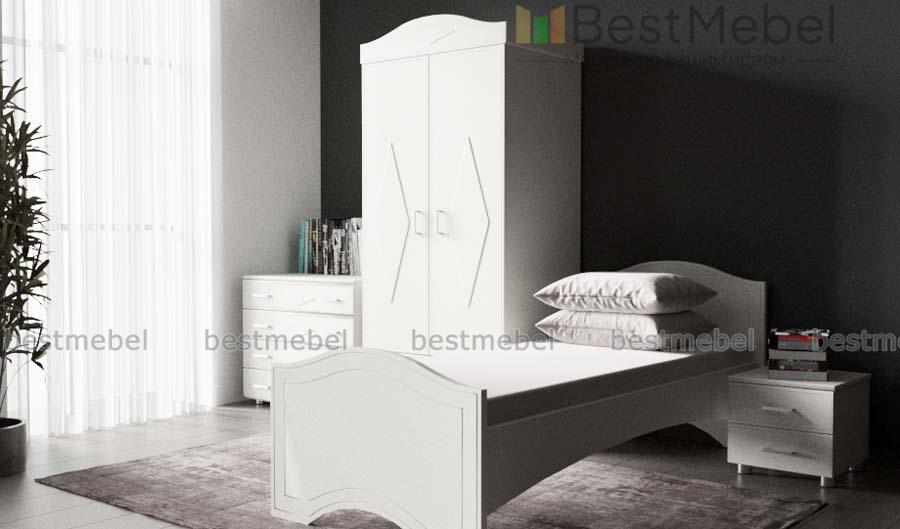 Спальня Соло 6 BMS станет прекрасным выбором для комнаты девочки. Легкий и изящный, модульный комплект выполнен в белом цвете и декорирован по фасадам фрезерованным рисунком. Продуманная композиция включает в себя кровать с фигурно вырезанными спинками, удобную для хранения мелочей прикроватную тумбу, распашной платяной шкаф с выдвижными ящиками в основании и вместительный бельевой комод. Купить спальню Соло 6 BMS вы сможете в нашем интернет-магазине по отличной цене.
