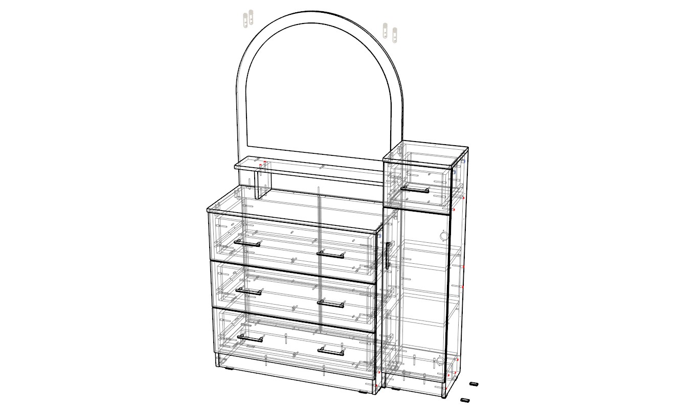 Трюмо: 1100 х 1650 х 360;