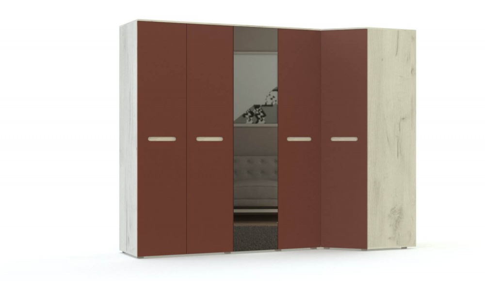 Спальня Вегас 02 BMS отличается редкой функциональностью, совмещая комфортную спальню и гардеробную. Модель в контрастном сочетании светлого корпуса древесных тонов и терракоторых фасадов проста по форме, эффектна и органично впишется в интерьеры стиля минимализм и хай-тек. В комплект входят просторная кровать с прикроватными тумбами, вместительный бельевой комод, навесное зеркало и продуманная угловая конструкция из распашных шкафов с зеркальной дверцей. Купить спальню Вегас 02 BMS приглашаем в наш интернет-магазин.