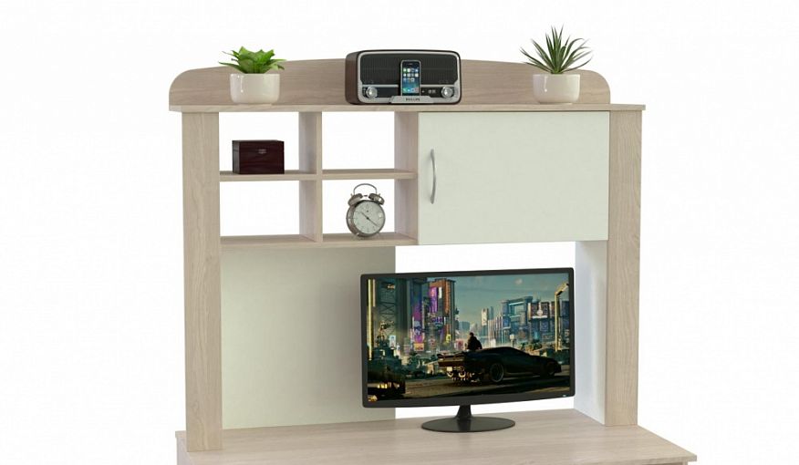 Надстройка Лаки 4 BMS сэкономит пространство и расширит функционал компьютерного стола. Модель с нишей под монитор оборудована четырьмя открытыми секциями для мелочей, глухим распашным отделением и широкой верхней полкой с бортиком, которая поможет разместить оргтехнику или предметы декора. Надстройка современного дизайна выполняется в нескольких актуальных оттенках на выбор. Купить надстройку Лаки 4 BMS приглашаем в наш интернет-магазин, подобрав цвет, размеры и фурнитуру.