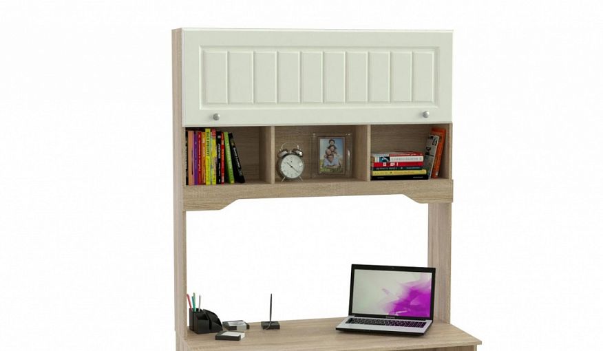 Надстройка Прима 9 BMS дополнит компьютерный стол в стиле прованс удобной системой хранения для канцелярских принадлежностей, книг и предметов декора. Модель с просторной нишей под монитор оборудована тремя открытыми секциями и вместительным отделением с открывающейся вверх дверцей. Выполненная в сочетании нейтральных древесных тонах и кремового, надстройка декорирована вертикальной фрезеровкой. Купить надстройку Прима 9 BMS вы сможете на сайте нашего интернет-магазина.