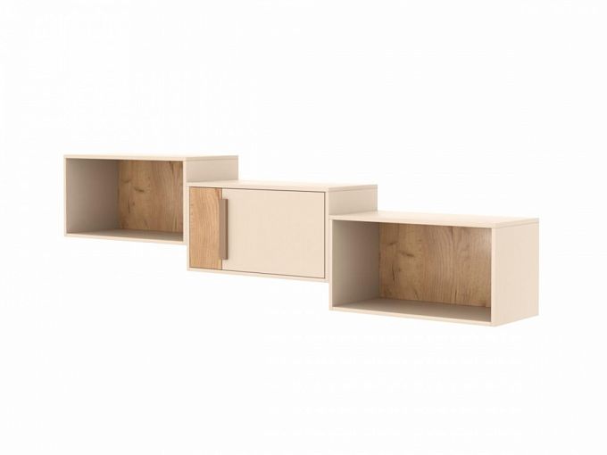 Полка Изабелла 5 BMS состоит из трех отдельных модулей – двух открытых и одного с распашным отделением и накладной ручкой. Лаконичные прямоугольные секции, выполненные в нейтральной коричнево-бежевой гамме, легко компонуются друг с другом. Вы сможете вписать полку в интерьер гостиной или молодежной комнаты и разместить учебные материалы, бытовые мелочи и предметы декора. Купить полку Изабелла 5 BMS приглашаем в наш интернет-магазин с подбором фурнитуры и цветового решения.
