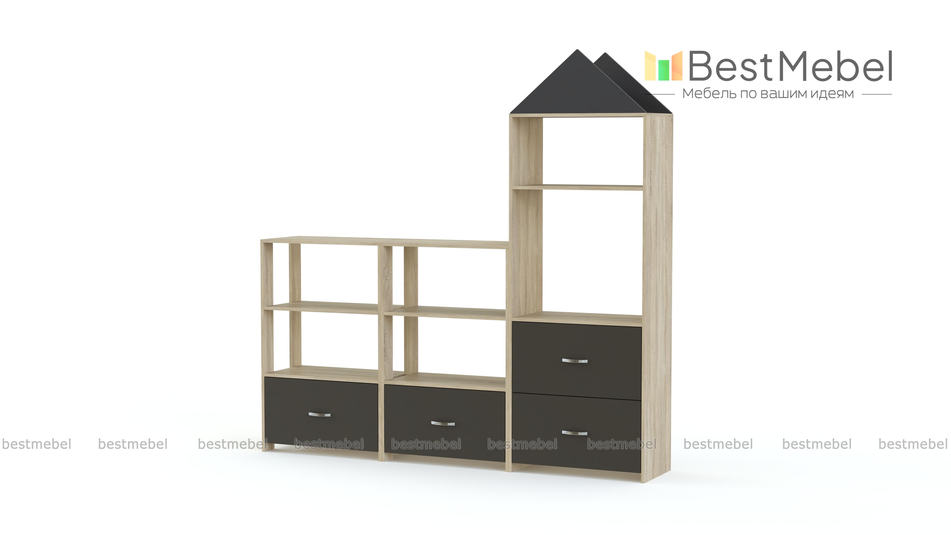 Стеллаж Астра 13 BMS включает в себя три модуля – два низких и высокий в форме башенки. Удобная система хранения из просторных открытых секций и выдвижных ящиков позволяет разместить игрушки, книги, поделки и материалы для творчества. Модель отличается красочным современным дизайном и надолго сохранит эстетичный вид благодаря использованию износостойких и экологичных материалов. Купить стеллаж Астра 13 BMS для меблировки игровой детской комнаты вы сможете в нашем интернет-магазине.