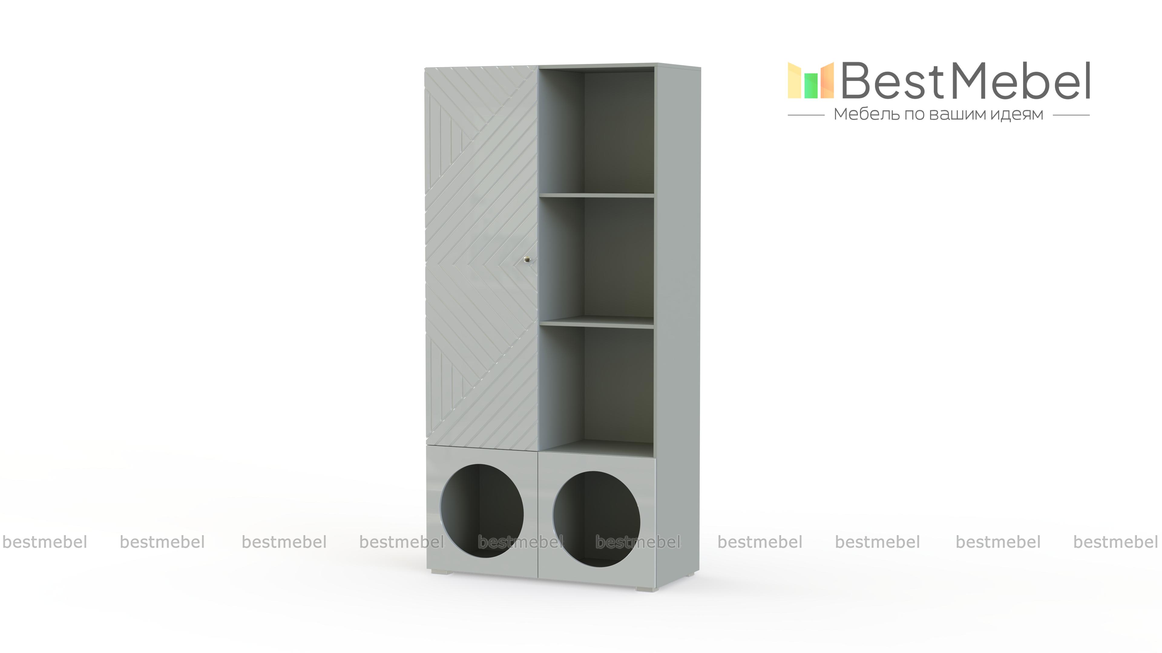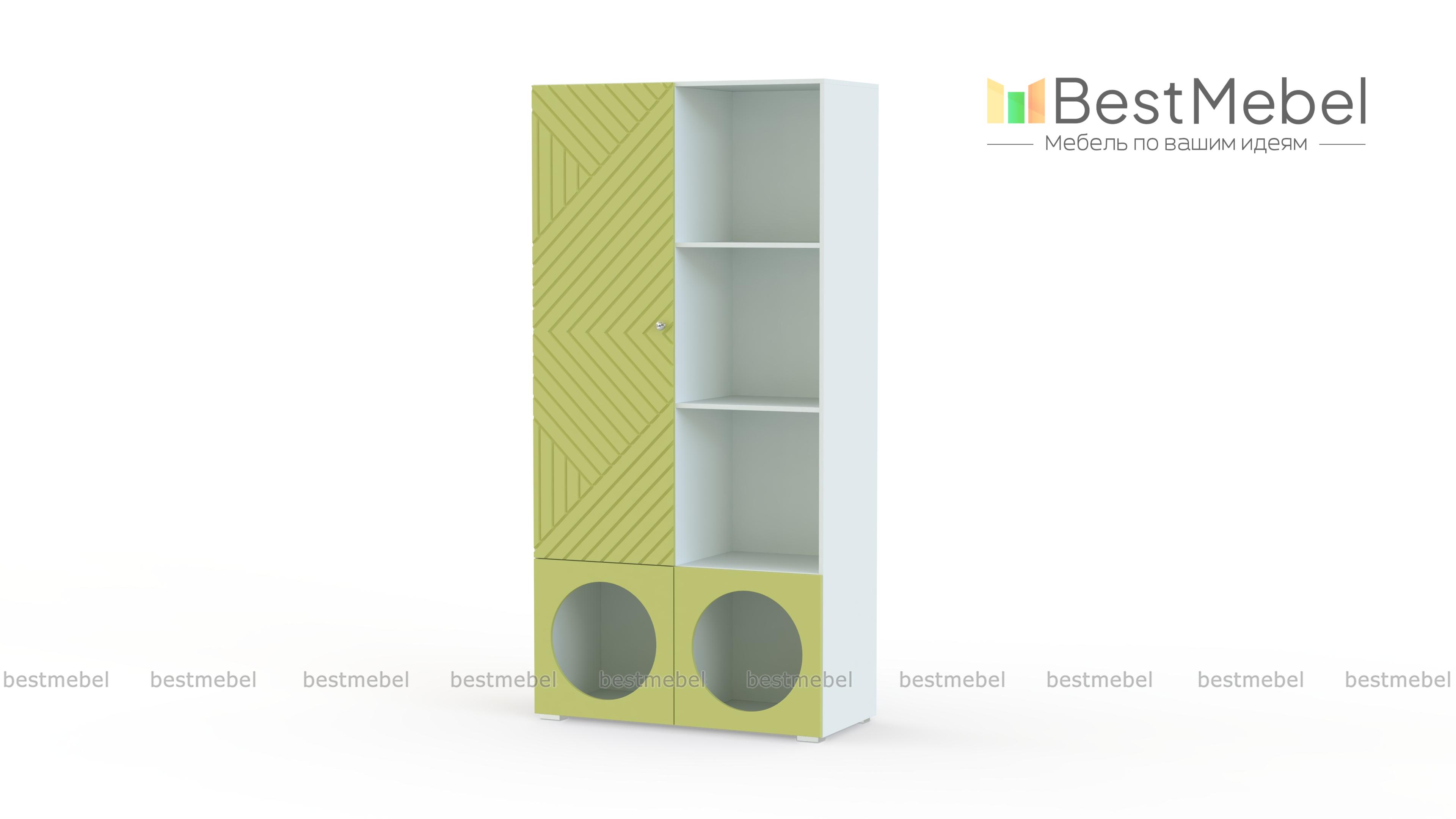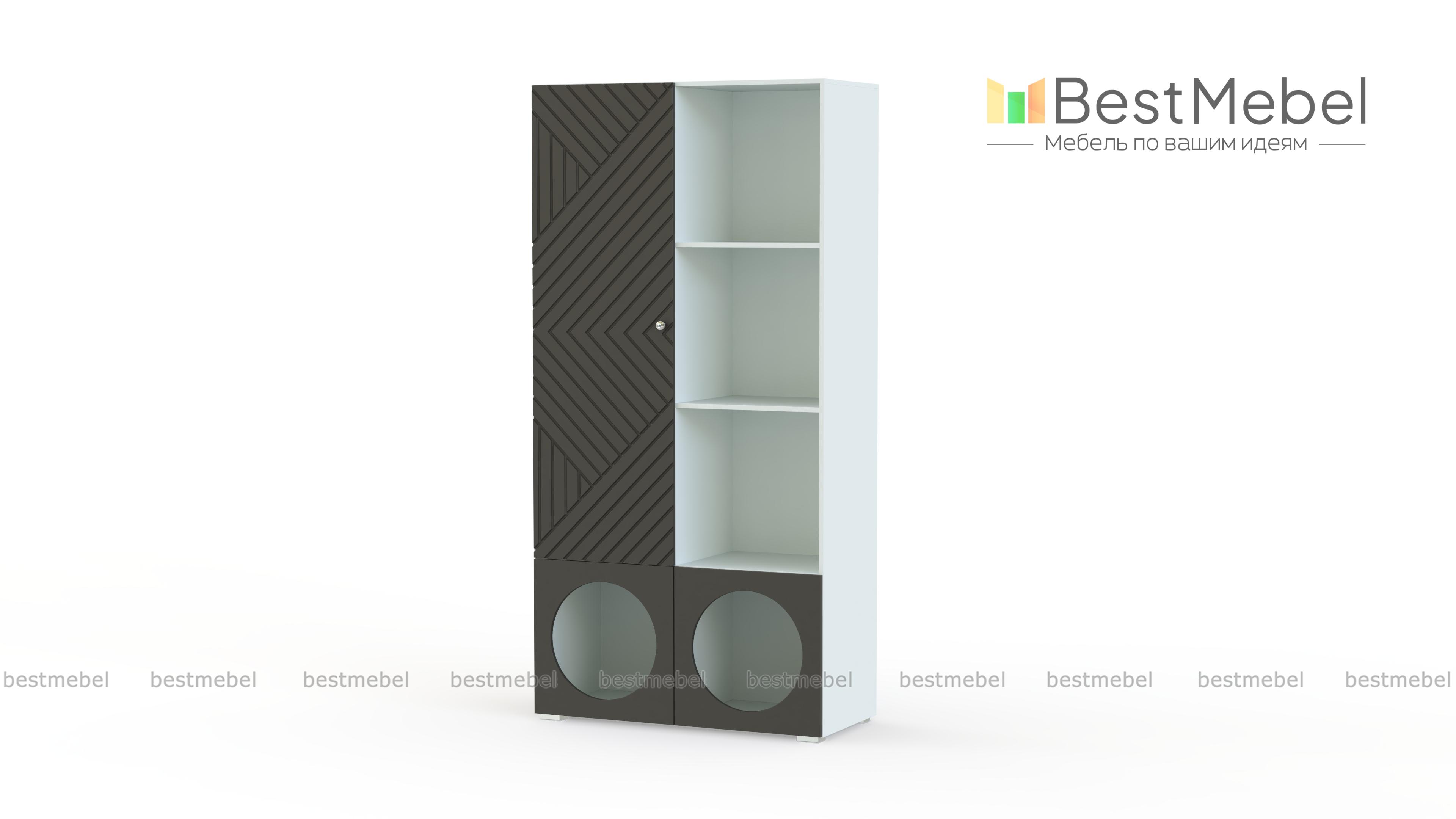 Стеллаж Авелин 18 BMS с разными типами полок поможет вам легко поддерживать порядок в детской или гостиной. Полностью открытые, скрытые за сплошной дверцей или круглыми вырезами, секции стеллажа составляют оригинальную конфигурацию. Еще одна стильная деталь — рельефный рисунок на фасаде из МДФ, выполненный в технике фрезеровки. Купить стеллаж Авелин 18 BMS вы сможете на сайте нашего интернет-магазина в необходимом размере и актуальном оттенке на выбор.