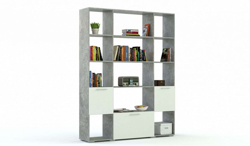 Стеллаж Брайс 1 BMS разместит большое количество вещей благодаря комбинированной конструкции. Крупногабаритный, но при этом визуально легкий стеллаж станет альтернативой книжному шкафу и удобен для зонирования. Модель, выполненная в нейтральных серо-белых тонах, оборудована как открытыми секциями для школьных принадлежностей и декоративных мелочей, так и вместительными глухими отделениями. Купить стеллаж Брайс 1 BMS по доступной цене вы сможете в нашем интернет-магазине.