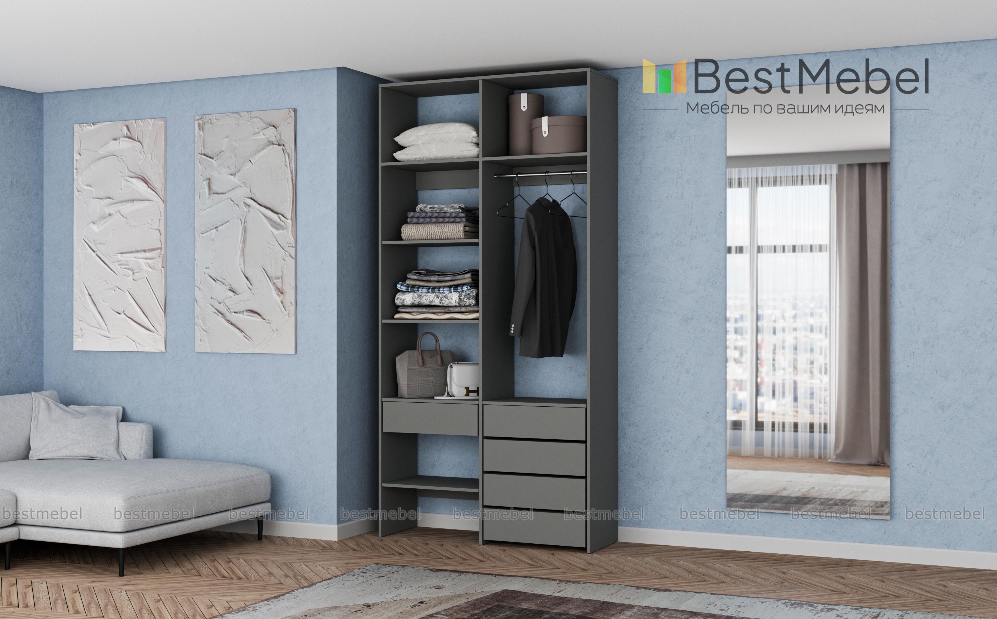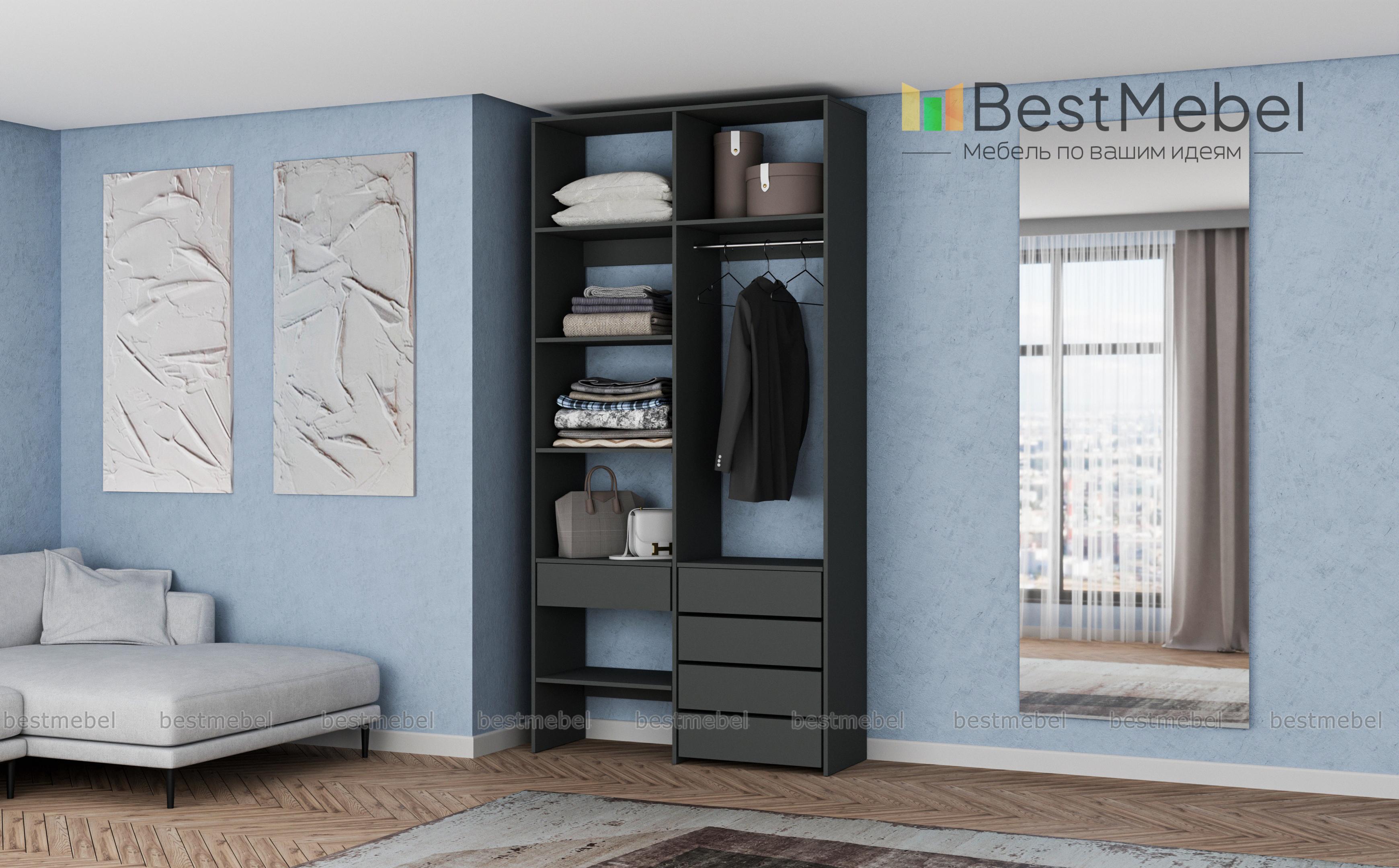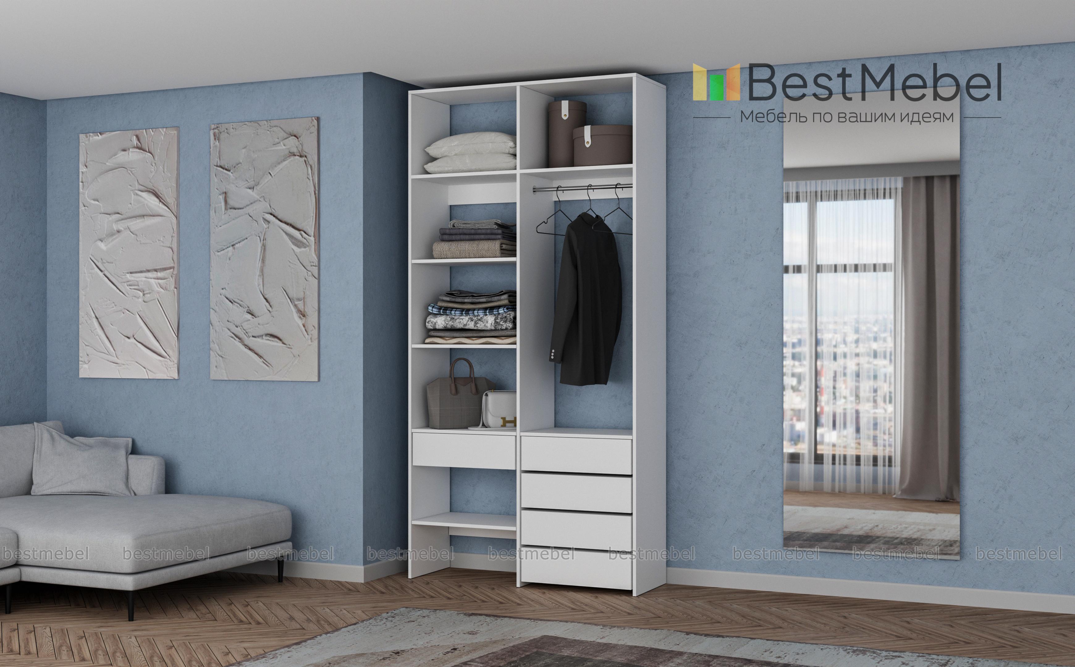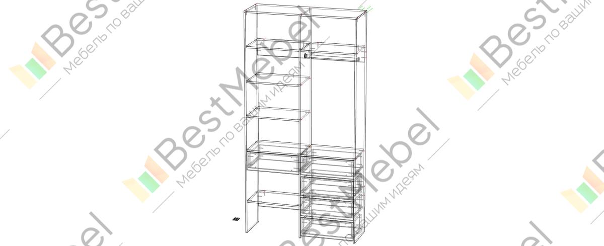 Стеллаж для одежды Мирта 1 BMS подходит для обустройства гардеробной, спальни или торгового зала. Изготовленная из высококачественной ламинированной плиты, конструкция обладает прочностью и долговечностью. Открытые полки дополнены штангой и пятью выдвижными ящиками, позволяя разместить одежду на вешалках и в сложенном виде, обувь и аксессуары. Купить стеллаж для одежды Мирта 1 BMS в необходимом размере и цвете вы сможете на сайте нашего интернет-магазина.