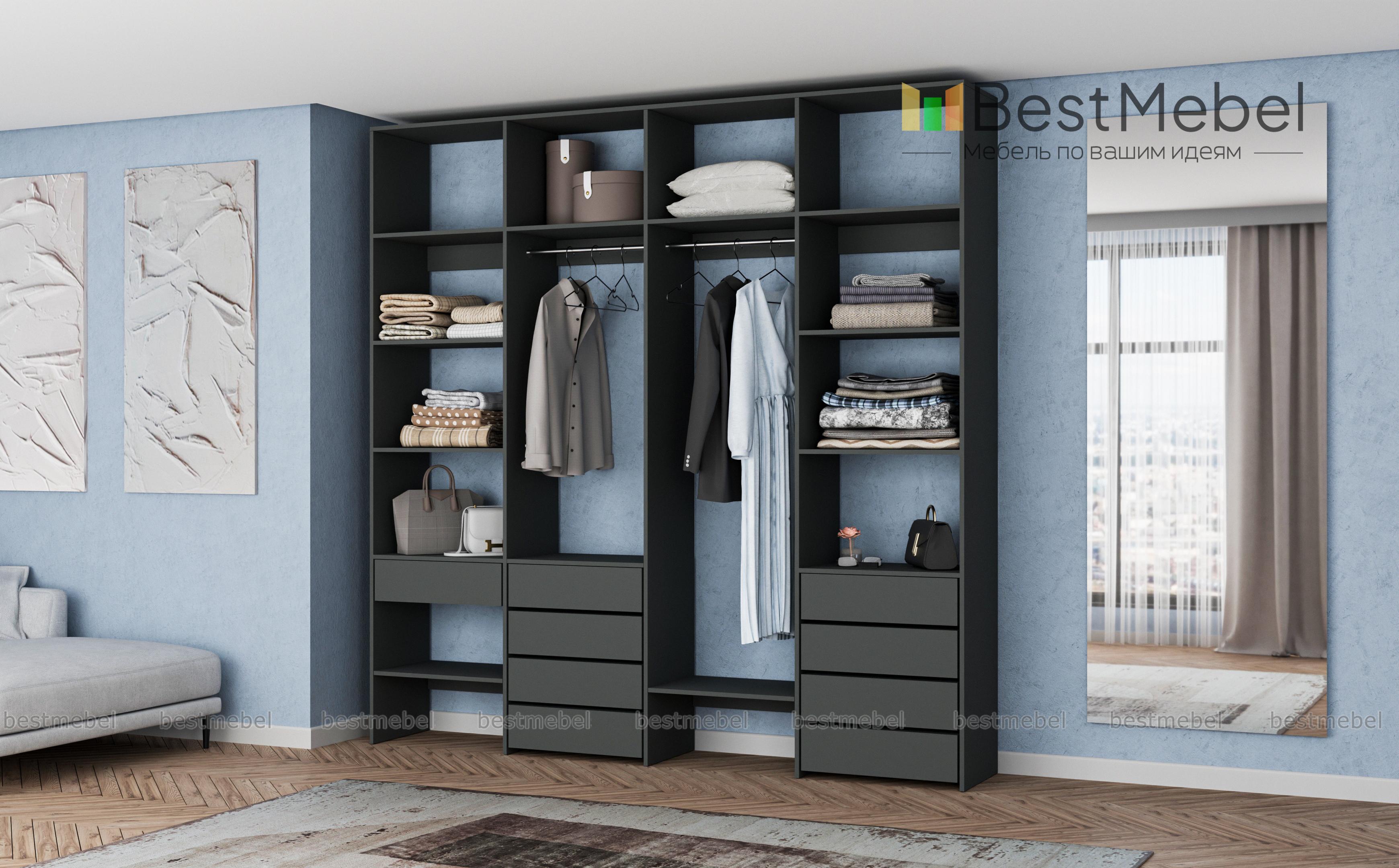 Стеллаж для одежды Мирта 19 BMS – практичный элемент интерьера современного дома. Обустроить функциональную и стильную гардеробную вам поможет комбинация из двух платяных штанг, бельевых комодов и открытых полок. Ламинированное покрытие не требует сложного ухода, а широкая цветовая гамма ЛДСП позволяет подобрать подходящий именно вам вариант. Купить стеллаж для одежды Мирта 19 BMS с изготовлением по индивидуальным размерам вы сможете в нашем интернет-магазине.
