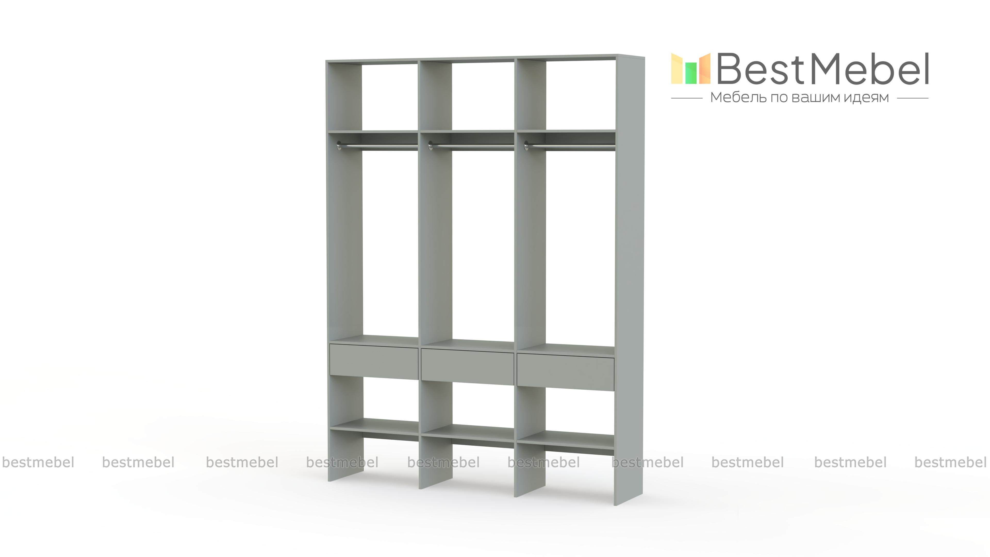 Стеллаж для одежды Мирта 51 BMS — визуально легкая и надежная конструкция из ламинированной ДСП, которую легко вписать в интерьер. Трехсекционный стеллаж прекрасно подходит для современных прихожих и гардеробных. Для вашего удобства три бельевых ящика и обувные полки располагаются снизу, а пространство над штангами занято полками для редко используемых вещей. Купить стеллаж для одежды Мирта 51 BMS вы сможете на сайте нашего интернет-магазина, подобрав цвет и размеры.