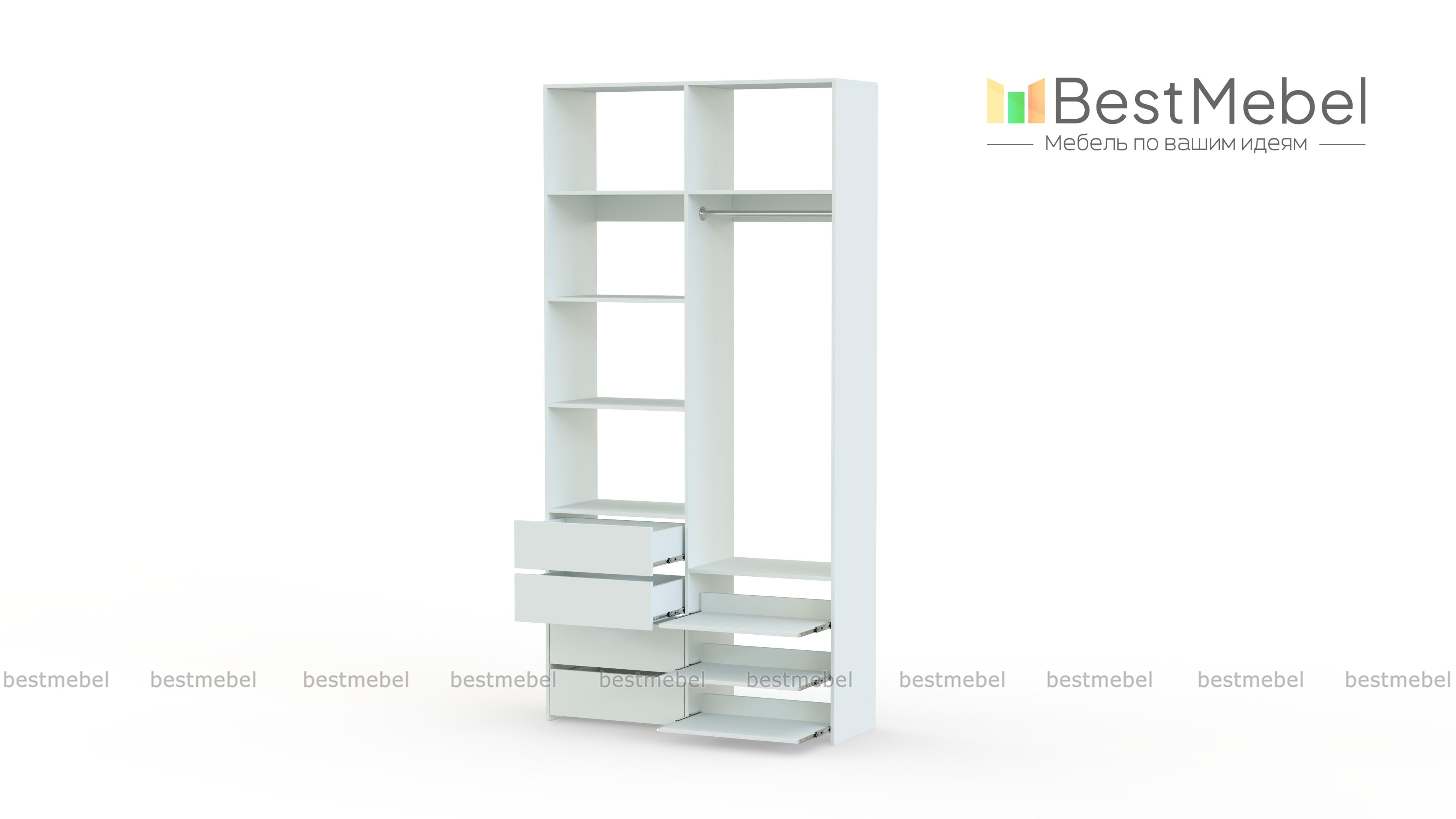 Стеллаж для одежды Мирта 87 BMS оптимален для небольших пространств. Штанга, выдвижные полки и ящики, а также пять просторных бельевых секций обеспечивают достаточно места для хранения базового гардероба. Простой и функциональный дизайн в сочетании с широкой цветовой гаммой позволяют легко комбинировать стеллаж с другой мебелью. Купить стеллаж для одежды Мирта 87 BMS с изготовлением по индивидуальным размерам вы сможете недорого в нашем интернет-магазине.