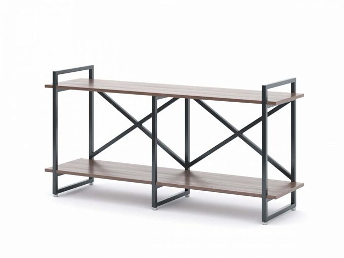 Стеллаж Кения 2 BMS отличается компактными размерами и брутальным дизайном в популярном лофт-стиле. Модель на устойчивых металлических опорах с перекладинами оборудована двумя открытыми полками под ТВ, аппаратуру, книги и предметы декора, выполненными в древесных тонах. Стеллаж гармонично вписывается даже в интерьер небольших помещений, надежен и не требователен в уходе. Купить стеллаж Кения 2 BMS приглашаем на сайт нашего интернет-магазина.
