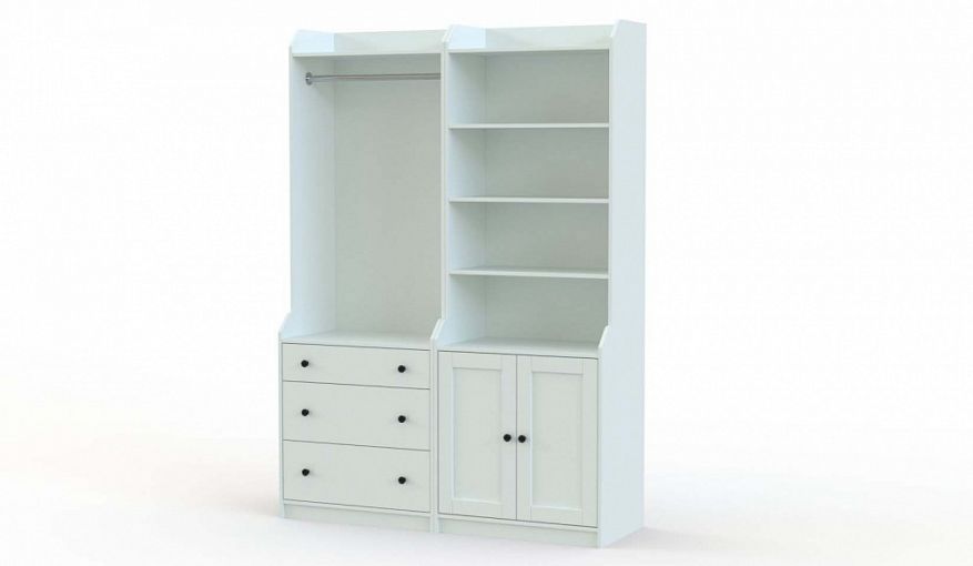 Стеллаж Хауга Hauga 1 состоит из двух модулей, которые вы сможете использовать и по отдельности. Комбинированный с распашным отделением стеллаж и дополненный стойкой для одежды комод помогут оформить входную зону в прихожей или спальный интерьер. Защитные бортики не дадут мелким предметам упасть, а скошенные углы сделают комфортной и безопасной эксплуатацию в небольшом помещении. Купить стеллаж Хауга Hauga 1 приглашаем в наш интернет-магазин с выбором цвета по каталогу. Выбирайте мебель в стиле IKEA (ИКЕА) от производителя BestMebelShop!