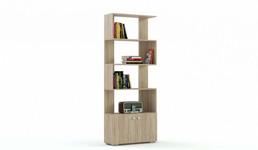 Стеллаж Кино 4 BMS – экономичный вариант для меблировки гостиных и молодежных комнат, сочетающий в себе оригинальный дизайн и функциональность. В основании комбинированной модели располагается двухдверное распашное отделение с глухим фасадом, а в верхней части – открытые полки «змейкой». Выполненный в светлых древесных тонах стеллаж вписывается в современные интерьеры разного типа и оптимален для размещения книг, декоративных предметов, бытовых вещей. Купить стеллаж Кино 4 BMS вы сможете недорого в нашем интернет-магазине.