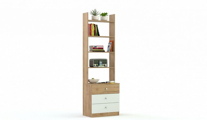Стеллаж Квинта 8 BMS гармонично впишется в интерьер современной детской и разместит как книги и предметы декора, так и множество мелочей. Комбинированная модель объединила стеллаж с четырьмя открытыми полками и тумбу, оборудованную тремя глубокими выдвижными ящиками. Визуально легкий в светлом цвете, стеллаж может использоваться самостоятельно и в комплекте с аналогичными модулями. Купить стеллаж Квинта 8 BMS вы сможете на сайте нашего интернет-магазина, подобрав цветовое решение.