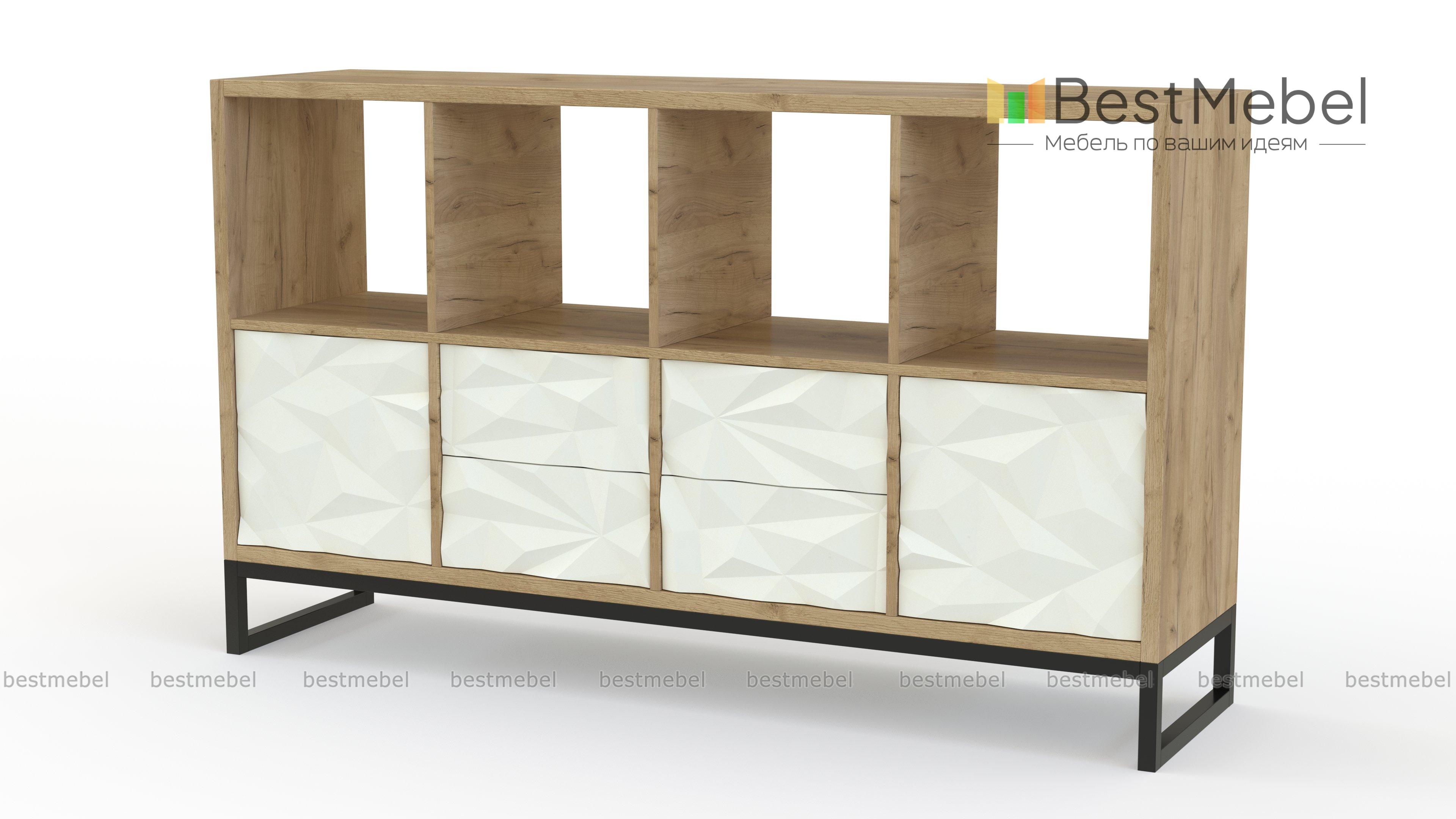 Стеллаж Лорис 12 BMS поможет удобно и эстетично оформить зону ТВ или пространство под зеркалом. Комбинированная с распашными секциями и выдвижными ящиками модель подходит как для хранения всевозможных бытовых вещей, так и для демонстрации декора. Стеллаж в лофтовой стилистике оборудован прочным и визуально легким металлическим основанием и украшен 3D фрезеровкой. Купить стеллаж Лорис 12 BMS с возможностью выбора размеров и цветового решения приглашаем в наш интернет-магазин.