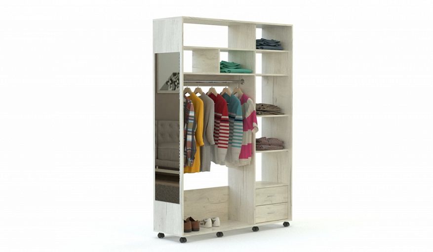 Стеллаж Максима 11 BMS помимо платяного отделения со штангой оборудован полками разных размеров, двумя выдвижными ящиками и секцией под обувь с высокой задней стенкой. Открытая модель разместит одежду на плечиках и в сложенном виде, домашний текстиль, аксессуары и многое другое, обеспечив вещам хороший обзор. Выполненный в трендовом крафтовом оттенке, стеллаж дополнен ростовым зеркалом и оснащен для мобильности колесиками. Купить стеллаж Максима 11 BMS по доступной цене вы всегда сможете в нашем интернет-магазине.