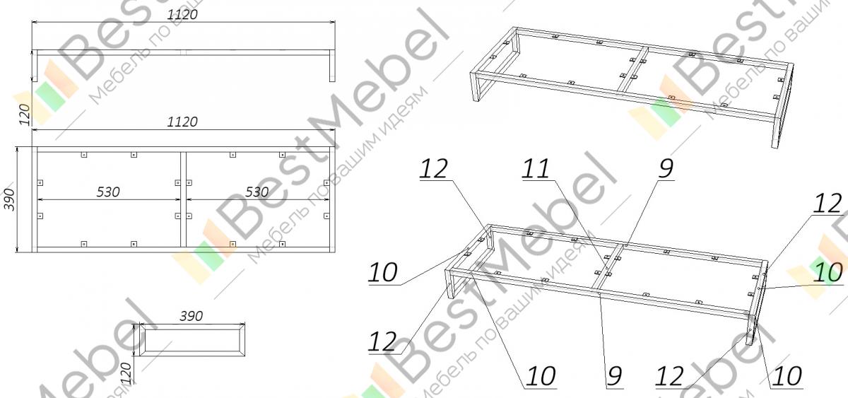 Товар выполнен из ЛДСП толщиной 22 мм. Материал и цвет можно изменить в конфигураторе.