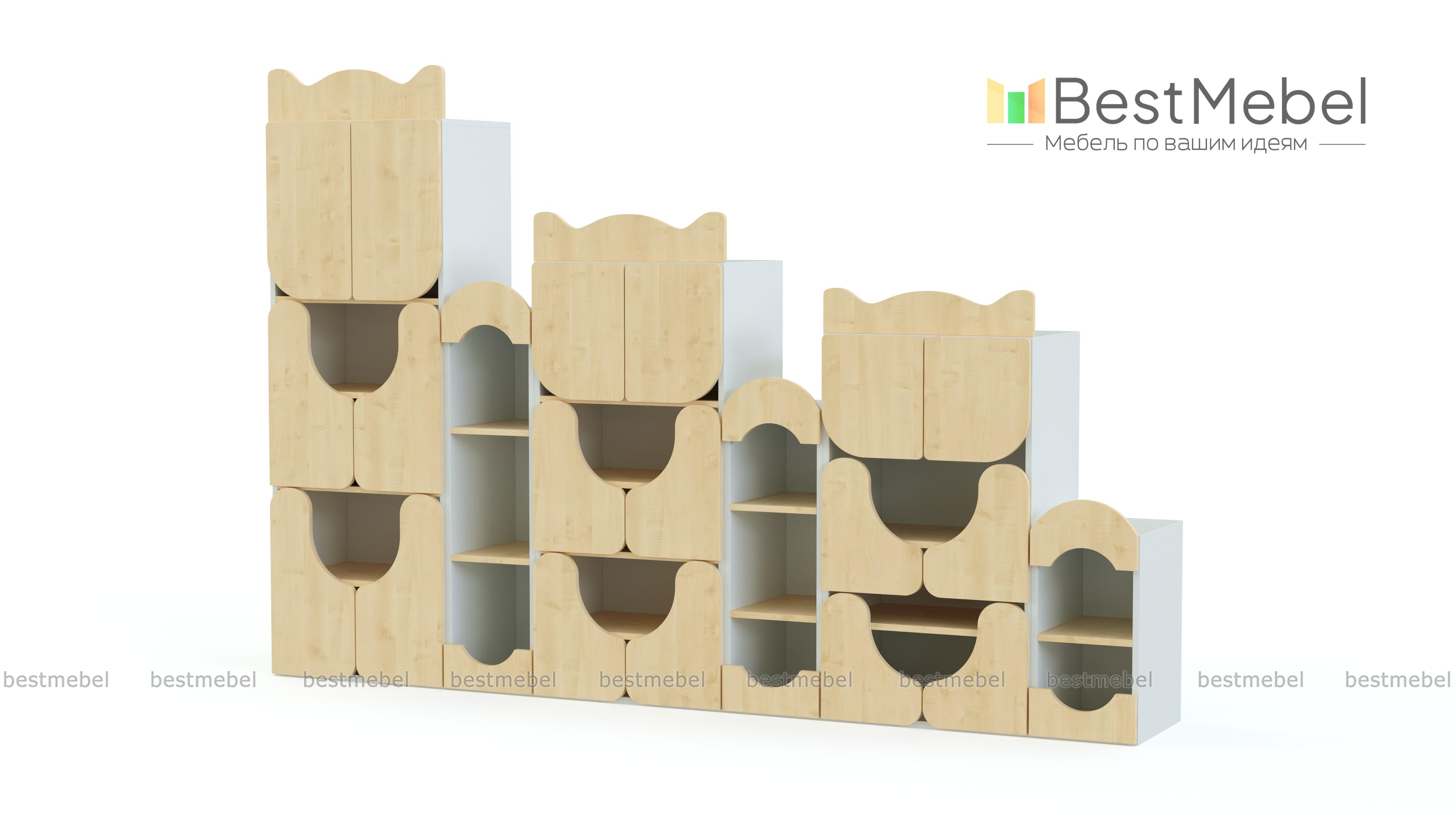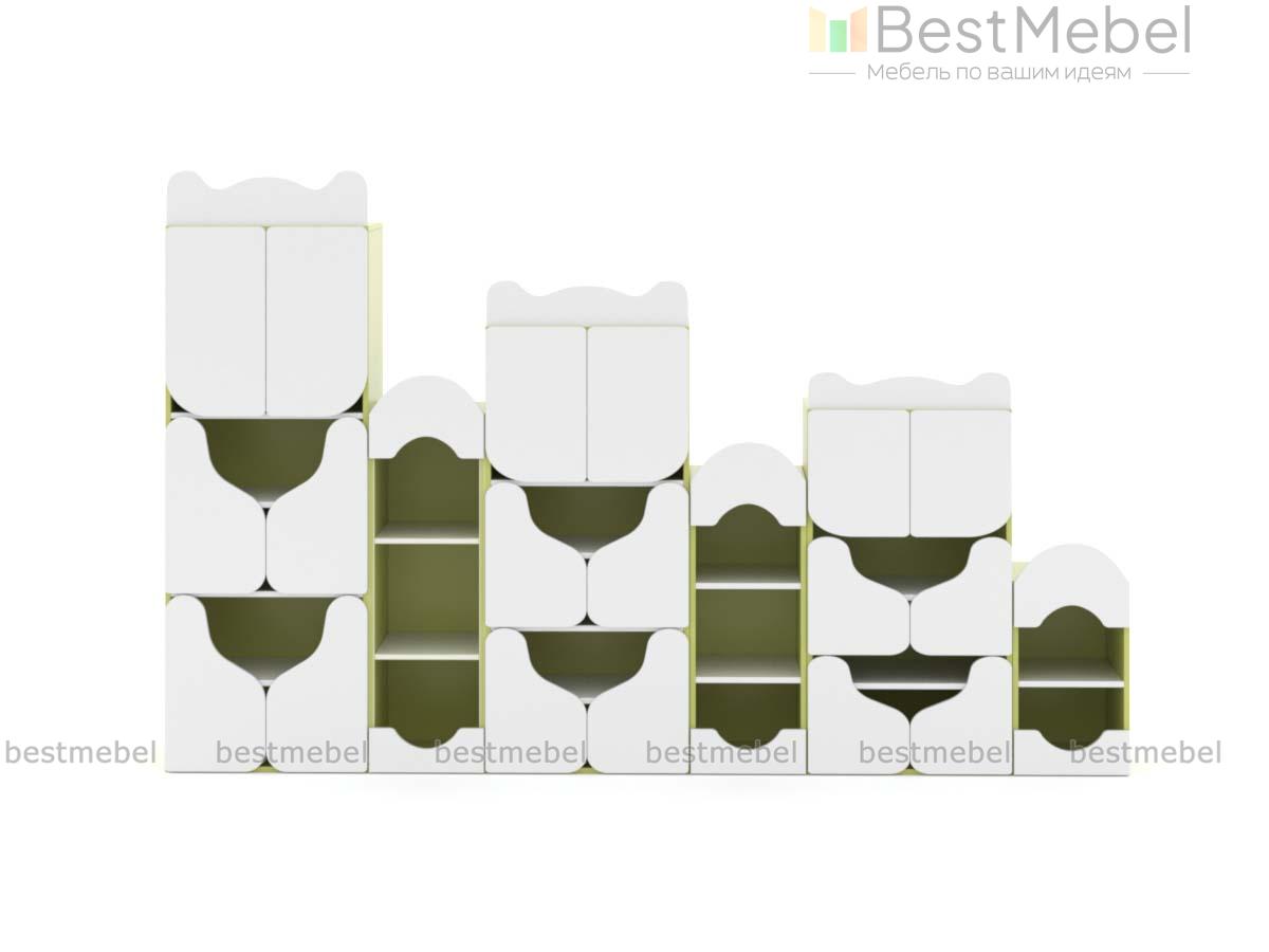 Стеллаж Шкипер 5 BMS предназначен для меблировки детских дошкольных учреждений и выделяется оригинальным дизайном. Три распашных шкафчика, выполненные в форме мишек, объединены стеллажами с открытыми полками и фигурно вырезанными элементами. Стеллаж обязательно понравится детям и бережно разместит книги, игрушки, материалы для творчества и учебные пособия. Купить стеллаж Шкипер 5 BMS для создания уютного и функционального интерьера вы сможете в нашем интернет-магазине.