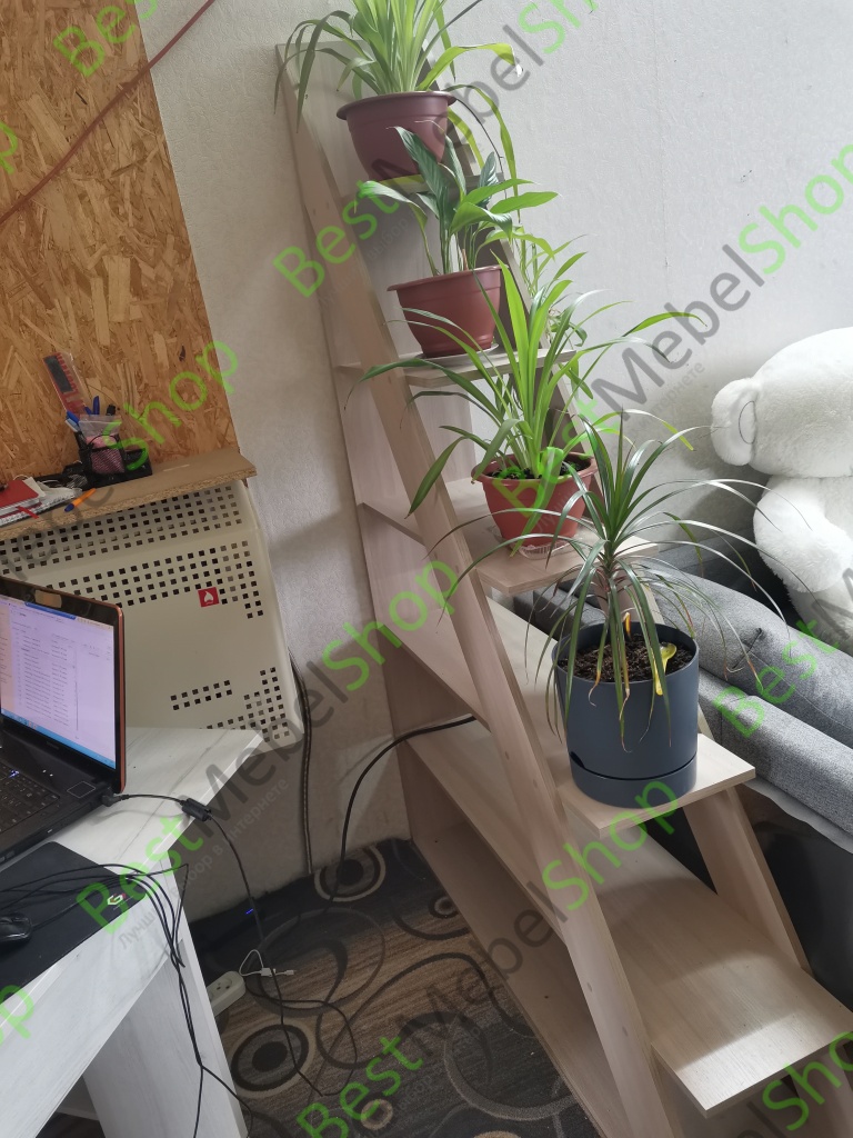 Стеллаж очень красиво смотрится, особенно с фиалками! Заказывали для интерьера холла отеля. Сначала купили один, потом понравилось, заказали и второй. Поставили два симметрично. Один недостаток: не кладут саморезы для крепления ножек. Зато кучу лишних мелких саморезов, которые для ножек не подходят!