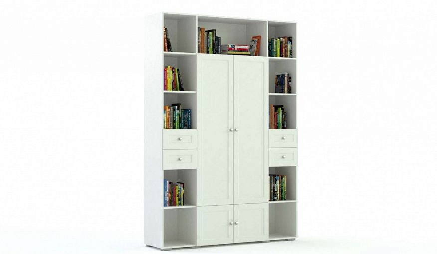 Стеллаж Виста 5 BMS – это элегантная классика для интерьера гостиной или рабочего кабинета. В центре комбинированного стеллажа располагаются глухие распашные отделения для одежды и разнообразных бытовых вещей, а по бокам – открытые книжные секции и выдвижные ящики для мелочей. Модель с традиционными рамочными фасадами выполнена в нейтральных белых тонах и надолго сохранит эстетичный вид благодаря износостойким материалам. Купить стеллаж Виста 5 BMS вы сможете по выгодной цене в нашем интернет-магазине.
