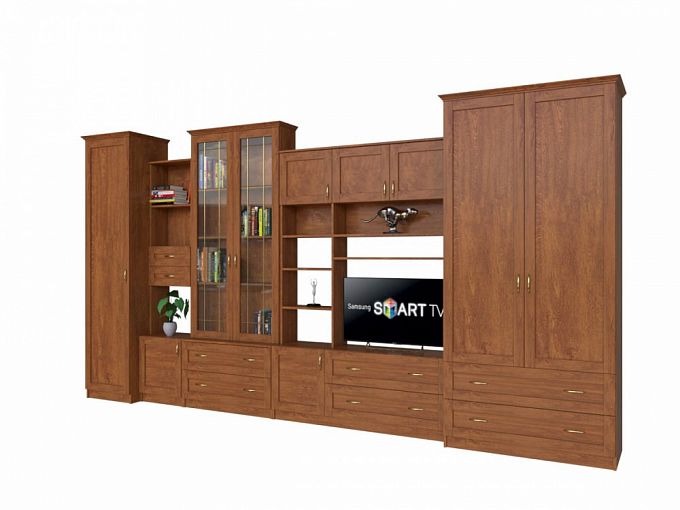 Очень и очень шикарная стенка. Как раз от стены до стены в моей гостиной стала. Всё там разместилось, и большая плазма, и личные вещи, и одежда, и книги. А этот большой застекленный шкаф-сервант – это наверно главное украшение модели. Глубокий красивый цвет пришелся мне по душе. Слов нет, одни эмоции, и причем только положительные.